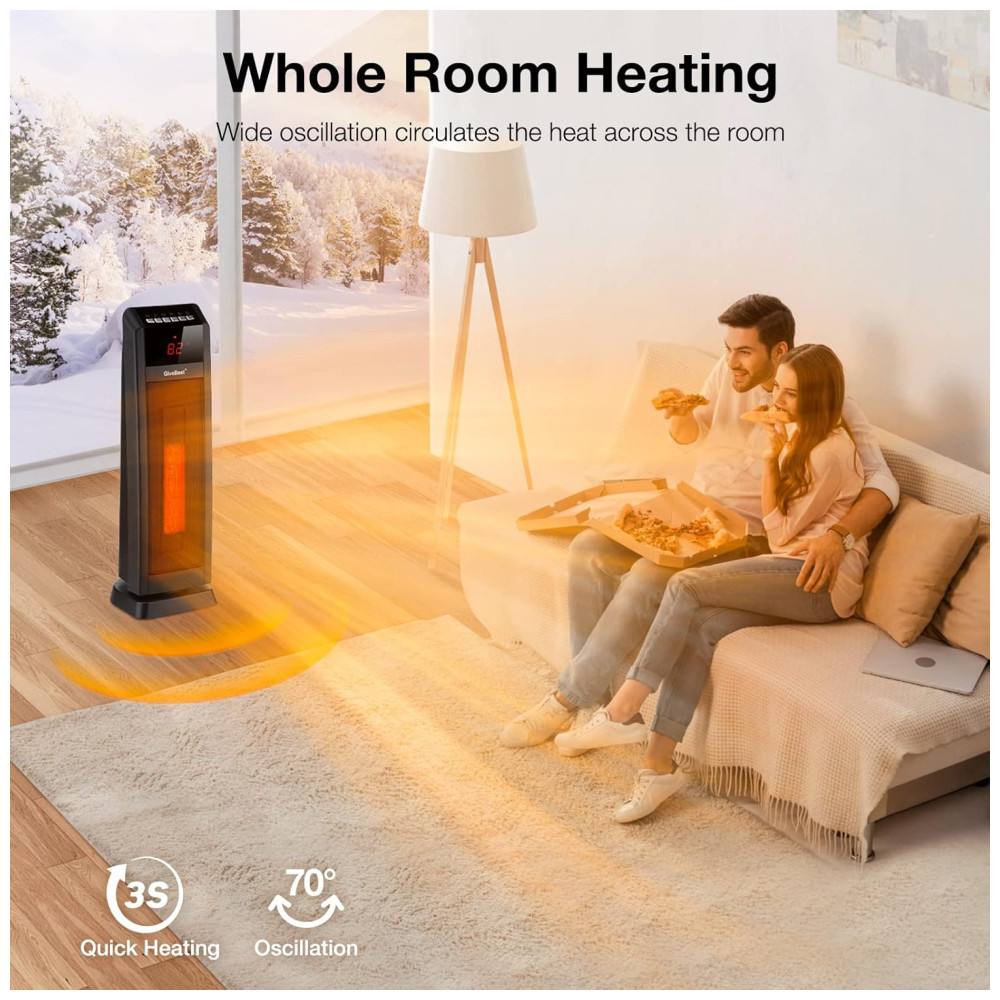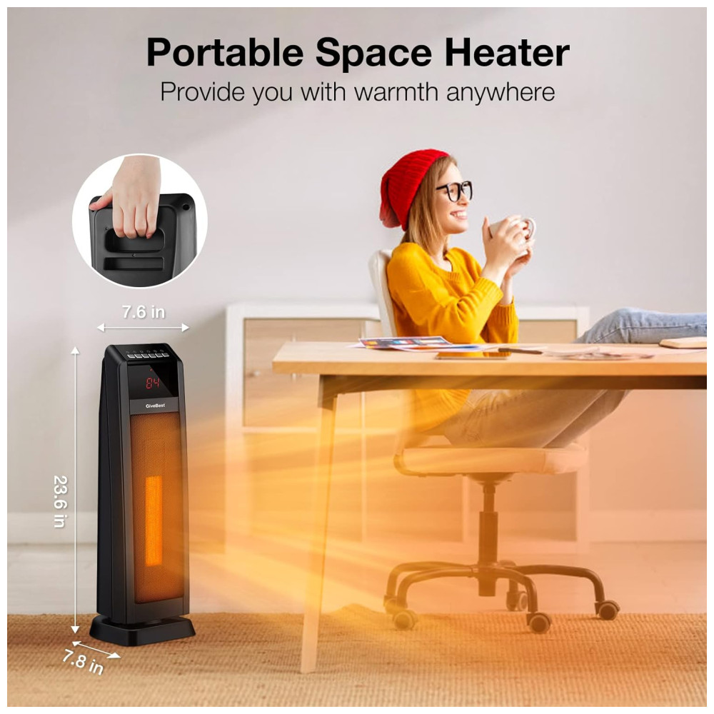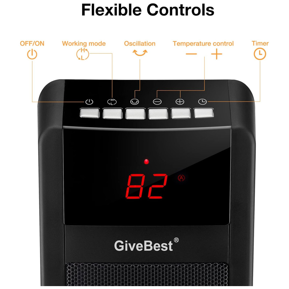 Aquecedor Fácil de Usar: Controle remoto, controle por toque, função de oscilação, função timer e alça embutida são características. Aquecedor de espaço certificado pela ETL, testado quanto à segurança. Aquecedor de torre perfeito para seu quarto, sala de estar, escritório.