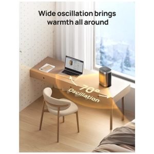 Ângulo de Aquecimento Amplo: Oscilação de 70° cobre toda a área, aquecendo quartos, garagens, escritórios e muito mais de forma abrangente.