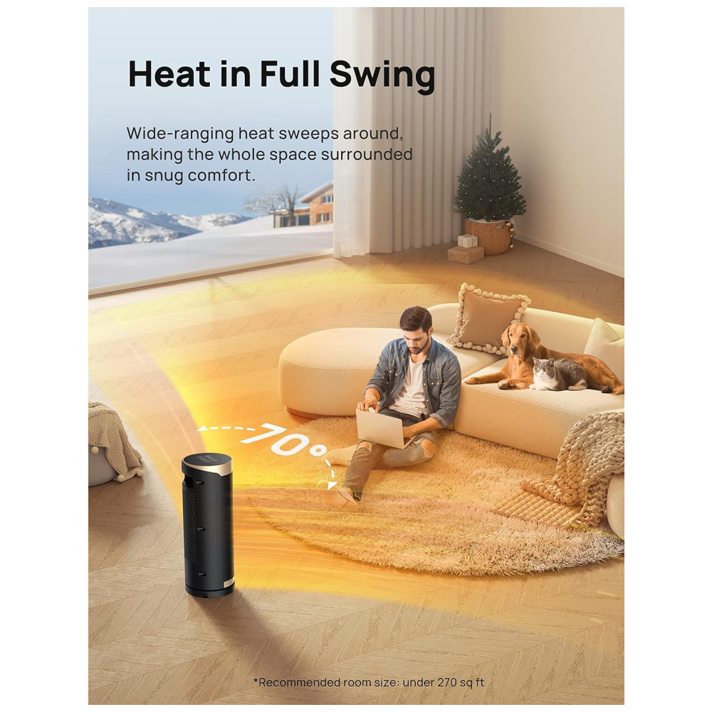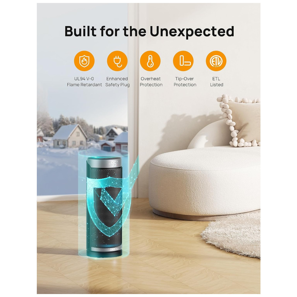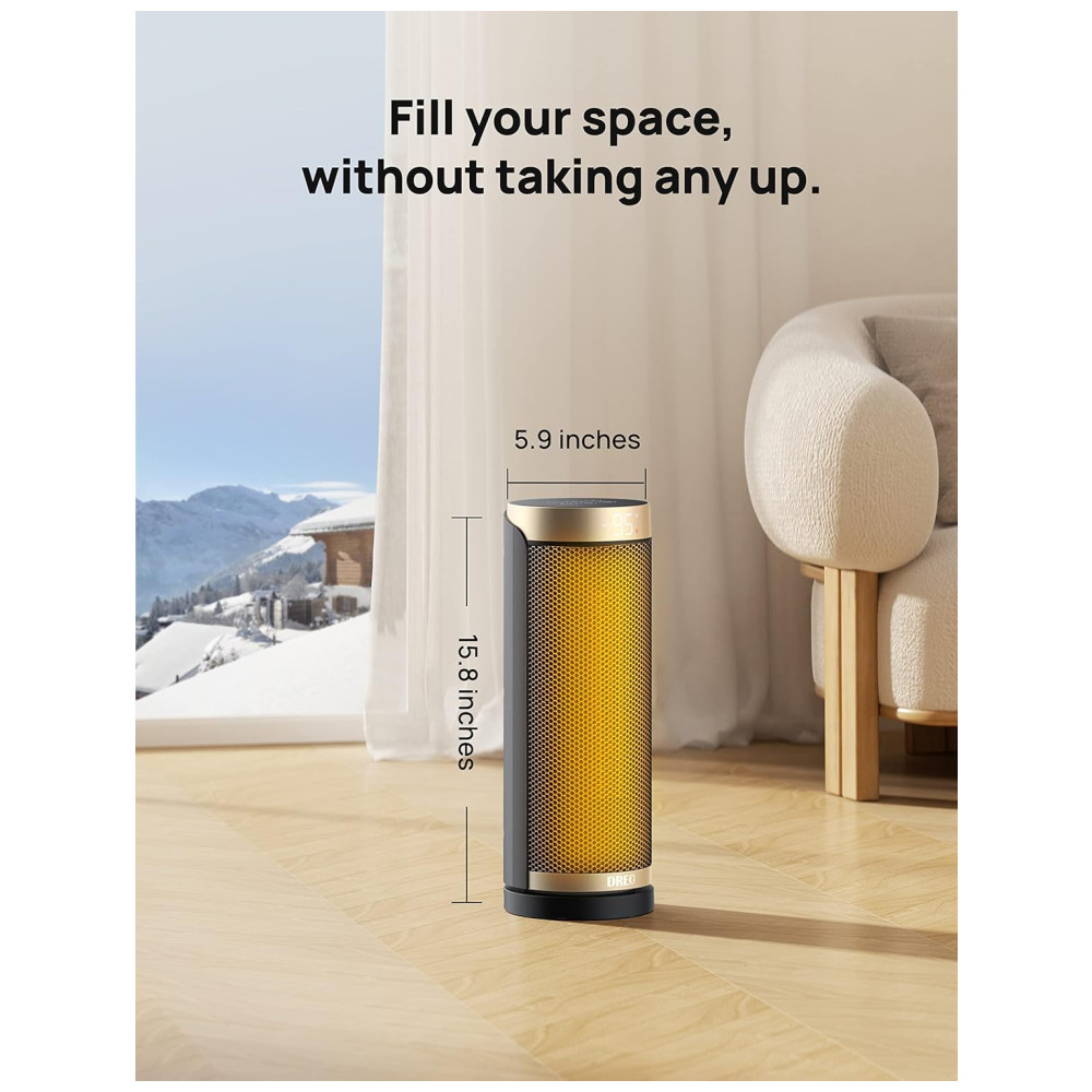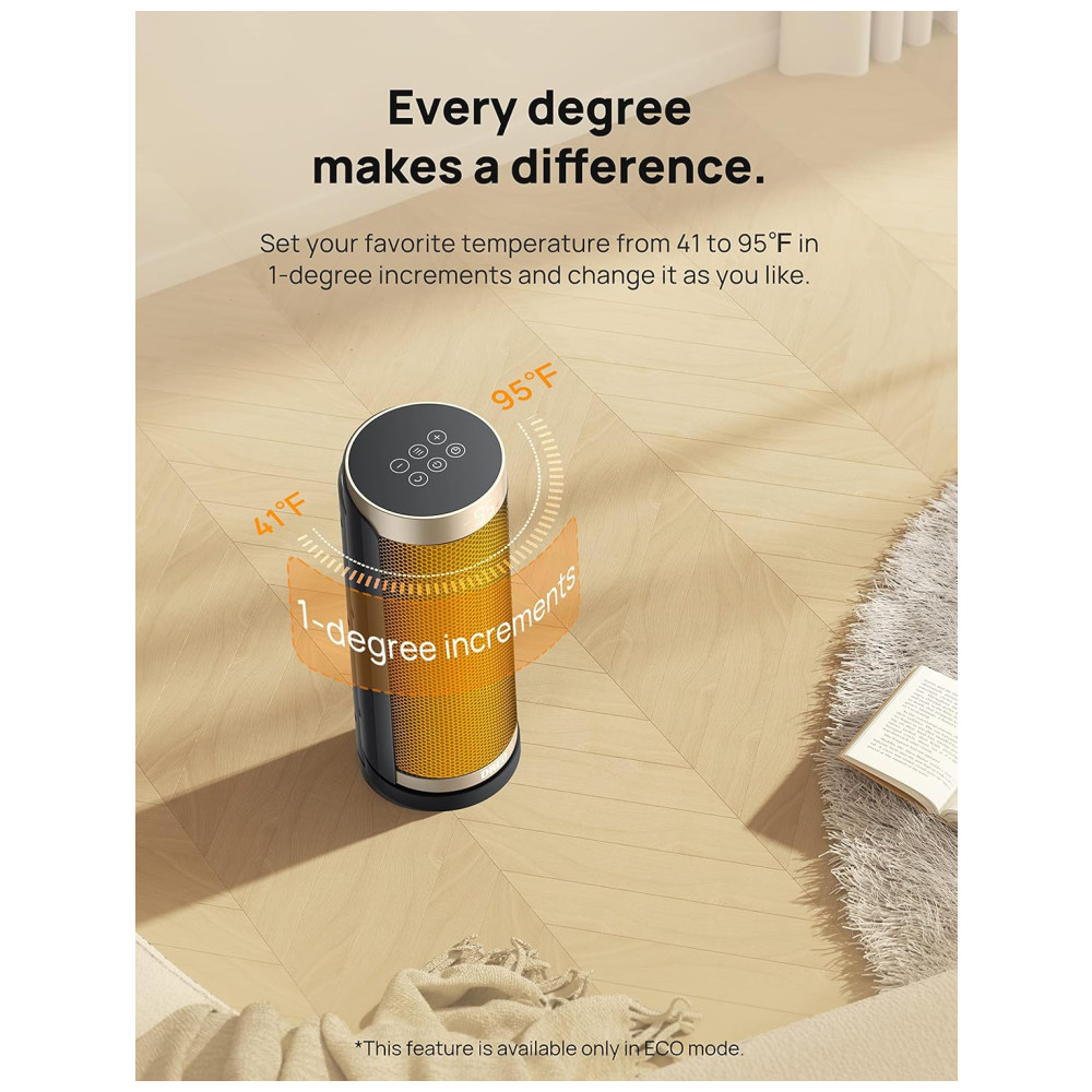 Conforto de Uso: A tela sensível ao toque está posicionada no topo do aquecedor para facilitar o alcance, e o controle remoto oferece acesso total a até 8 metros de distância. O design compacto de 40 cm torna nosso aquecedor um verdadeiro economizador de espaço, fácil de mover com sua alça oculta. Comprimento do Cabo: 1,8 metros.