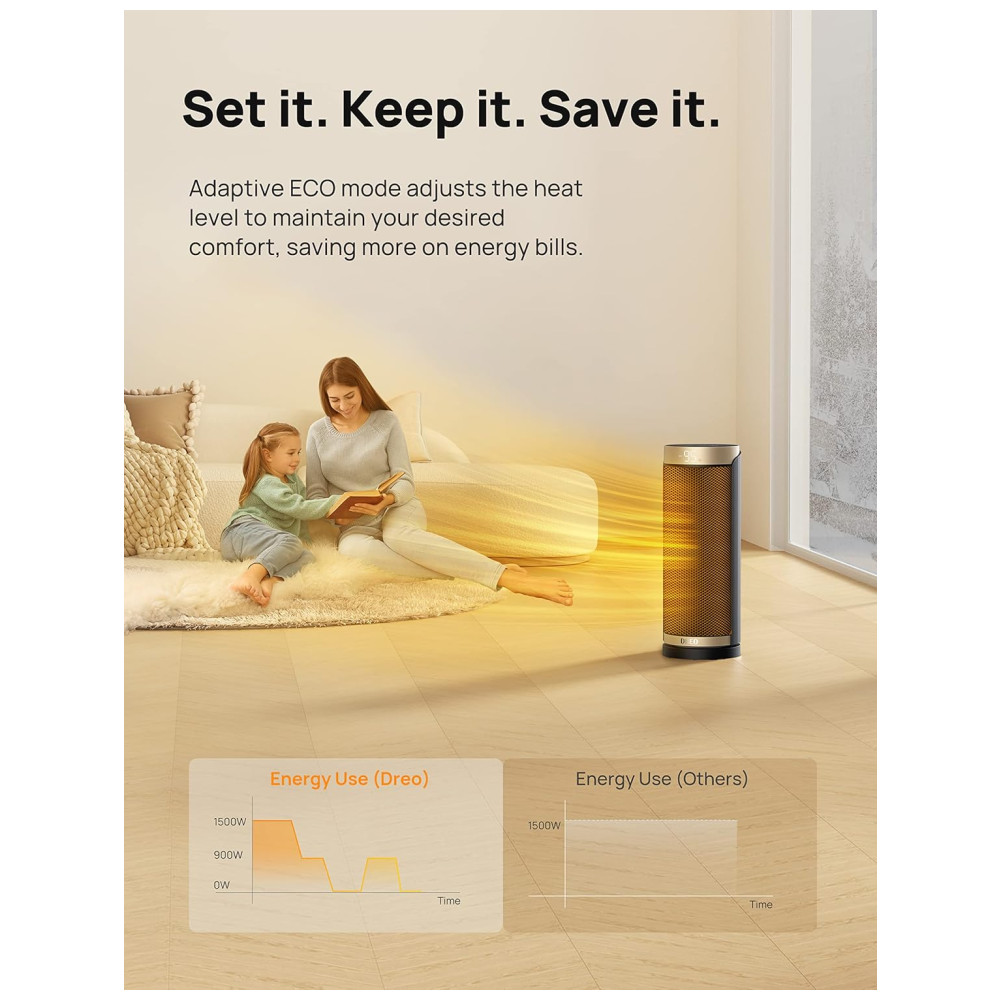 Eficiência Energética: Economize nas contas de energia e viva de forma mais sustentável. Com um sensor de temperatura preciso embutido, o modo ECO inteligente ajusta o modo de funcionamento de forma independente (com uma baixa de 900W e alta de 1500W para manter de forma eficiente a temperatura interna desejada) com base na temperatura ambiente.