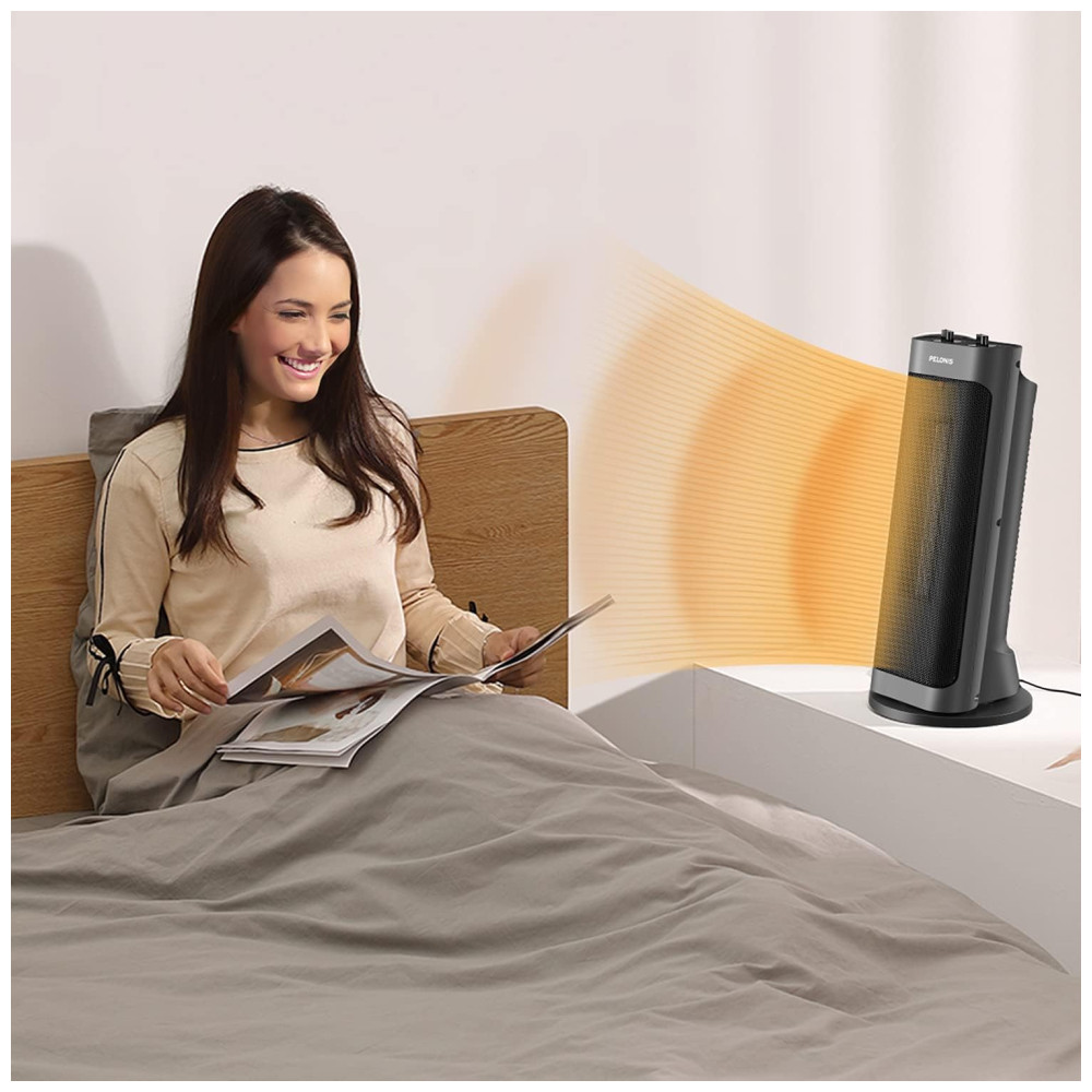 Apresentando o Aquecedor Elétrico Portátil PELONIS para uso interno com Termostato, Aquecimento Rápido de 1500W, Proteção contra Superaquecimento e Queda, Função de Oscilação de 70° para Escritório, Casa, Quarto, Cinza.