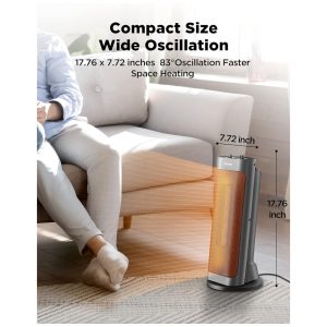 Função de Oscilação Ampla: Este aquecedor cerâmico pode girar lateralmente dentro de 83 graus, aquecendo rapidamente e de maneira uniforme todo o ambiente enquanto mantém uma temperatura consistente.