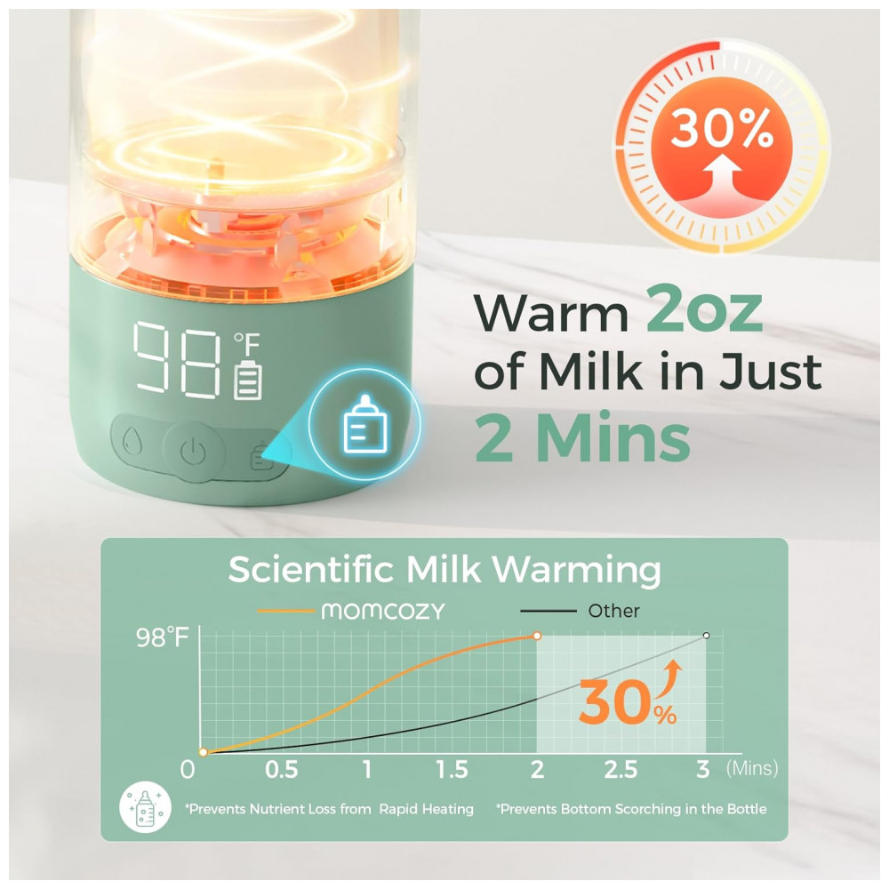 Aquecedor de Leite Portátil Momcozy para Viagem com Modos de Aquecimento Duplo para Leite Materno e Água Aquecedor de Mamadeira Portátil com Aquecime