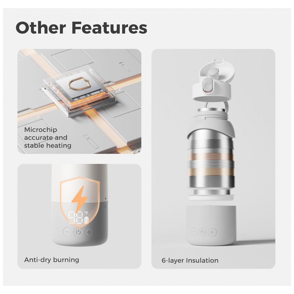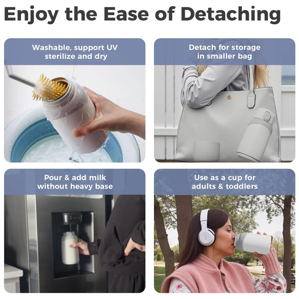 Aquecedor de Leite Portátil Pro para Viagens BOLOLO Design Destacável com Aquecimento Rápido e Estável para Leite Materno e Água Capacidade de 493ml