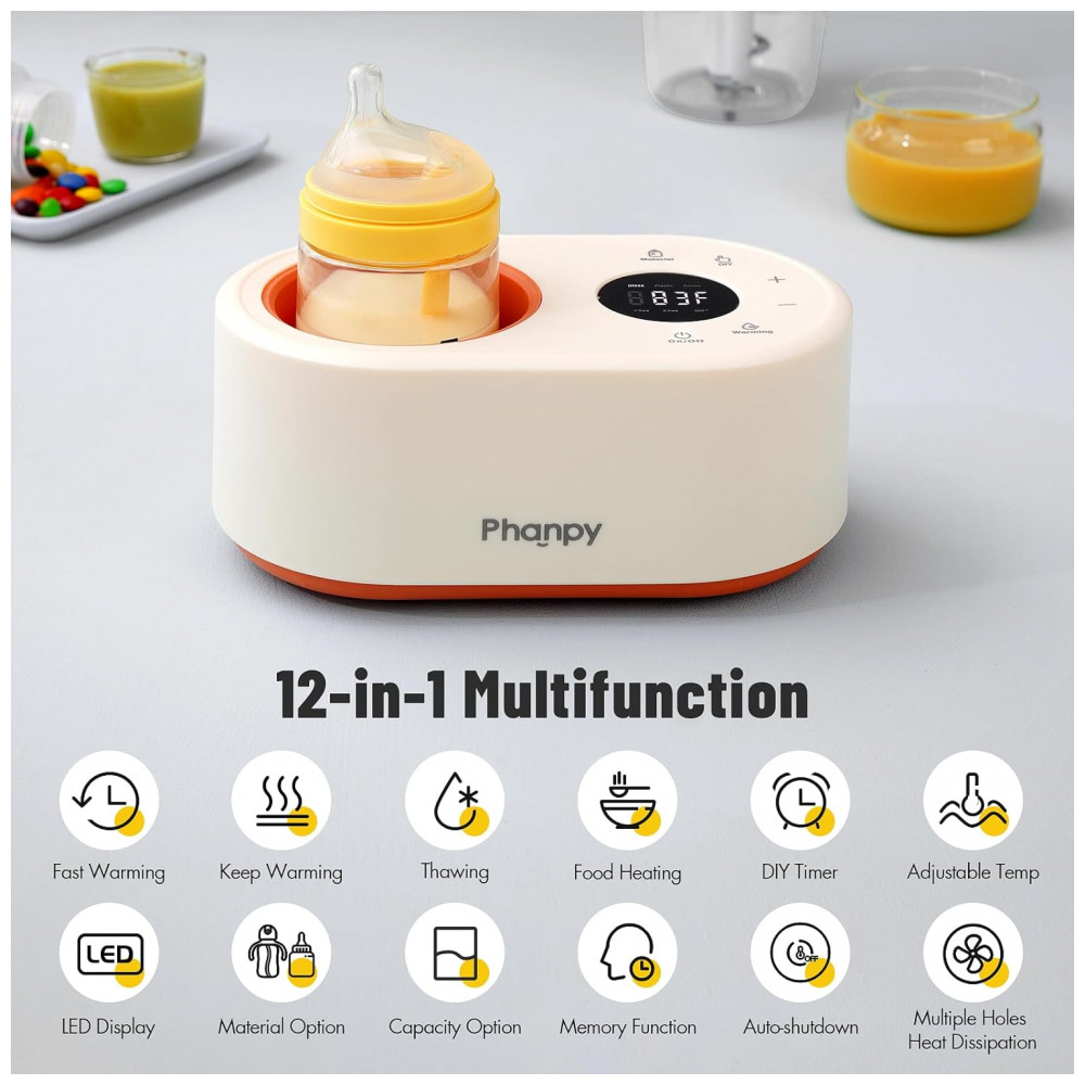 Aquecedor de Mamadeira 12 em 1 Multifuncional sem Água para Leite Materno Phanpy Laranja