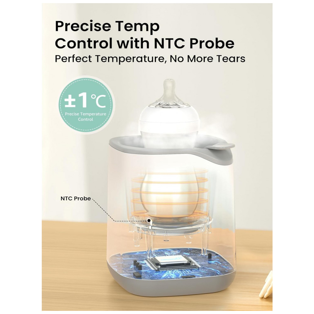 Aquecedor de Mamadeira GROWNSY 2025: Aquecimento Rápido em 35 Minutos Controle Inteligente de Temperatura Luz Noturna – Cinza