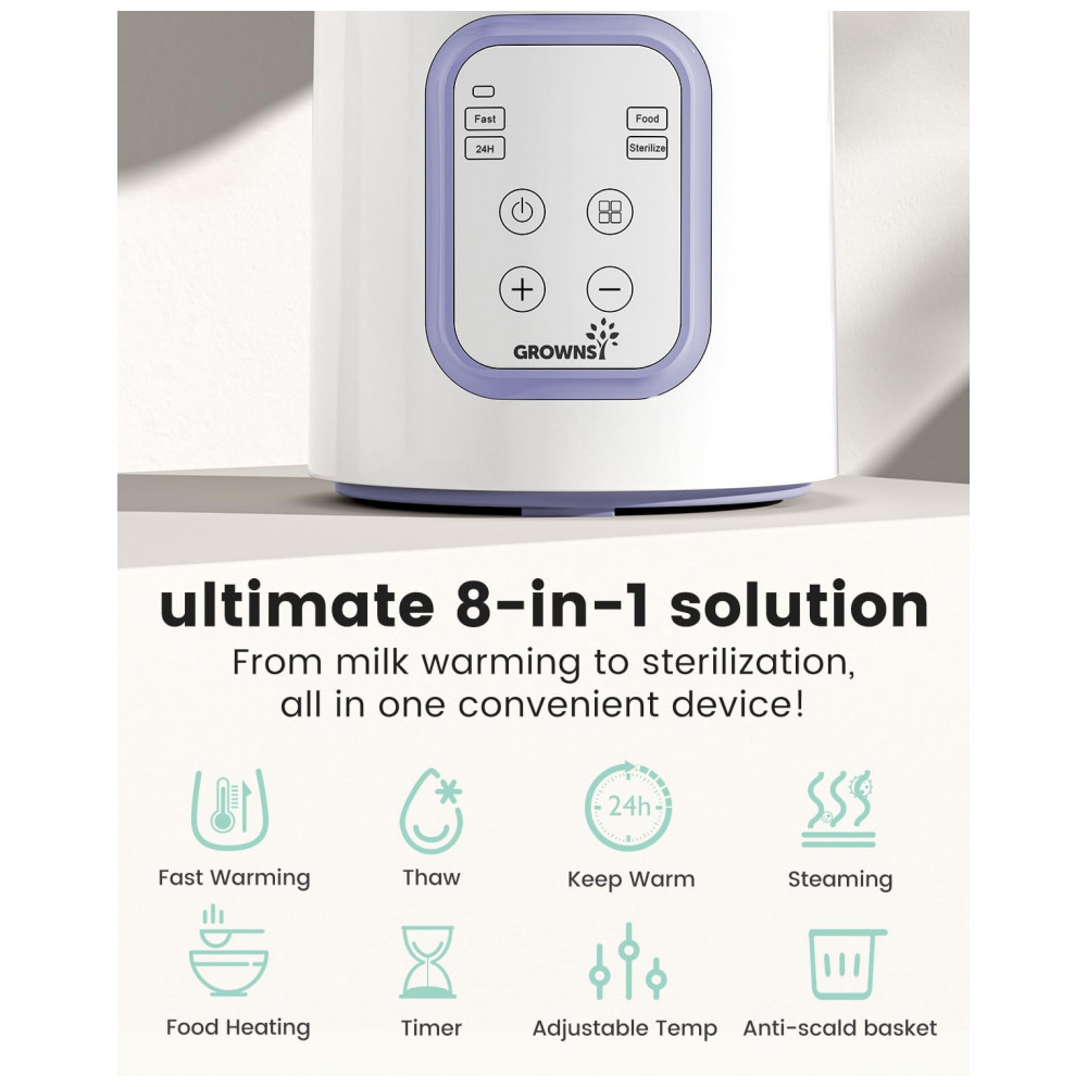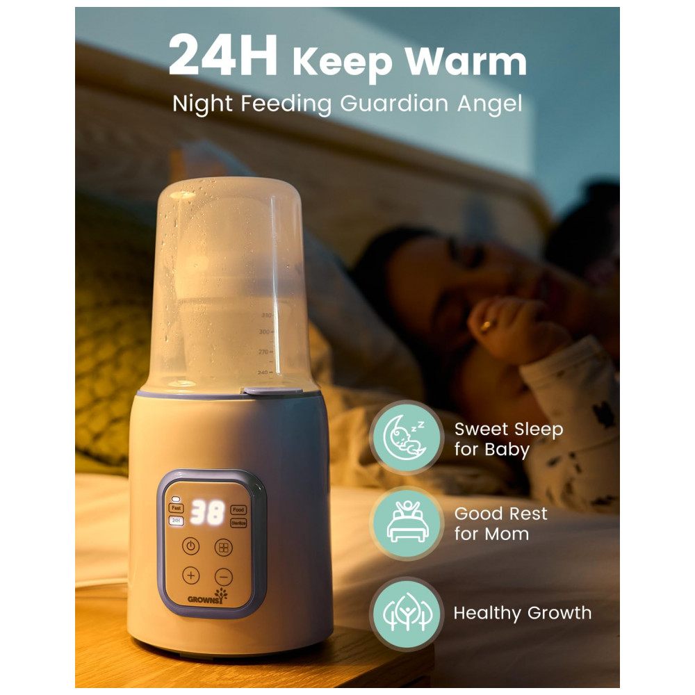 Aquecedor de Mamadeira GROWNSY 8 em 1 Rápido e Eficiente para Leite Materno ou Fórmula Infantil Controle Inteligente de Temperatura e Desligamento