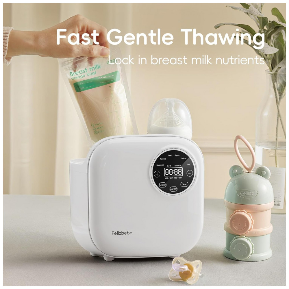 Aquecedor de Mamadeira para Bebê Felizbebe 10 em 1 para Todos os Tipos de Mamadeiras Corpo Removível para Limpeza Fácil Controle Preciso de Tempera