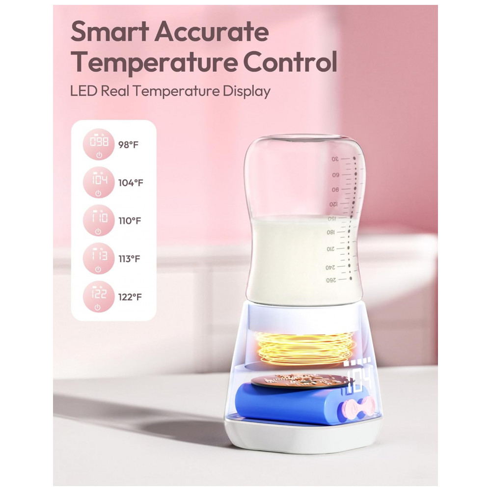 Aquecimento rápido e controle preciso de temperatura: Este dispositivo bacana pode aquecer 118.29 ml de leite a 37C em apenas 2 minutos. Ele oferece cinco configurações de temperatura regularmente ajustáveis 37C, 40C, 43.3C, 45C, 50C graças à avançada tecnologia de aquecimento uniforme e sondas externas com detecção de temperatura para controle preciso. Você pode facilmente atingir a temperatura perfeita do leite para o seu bebê.