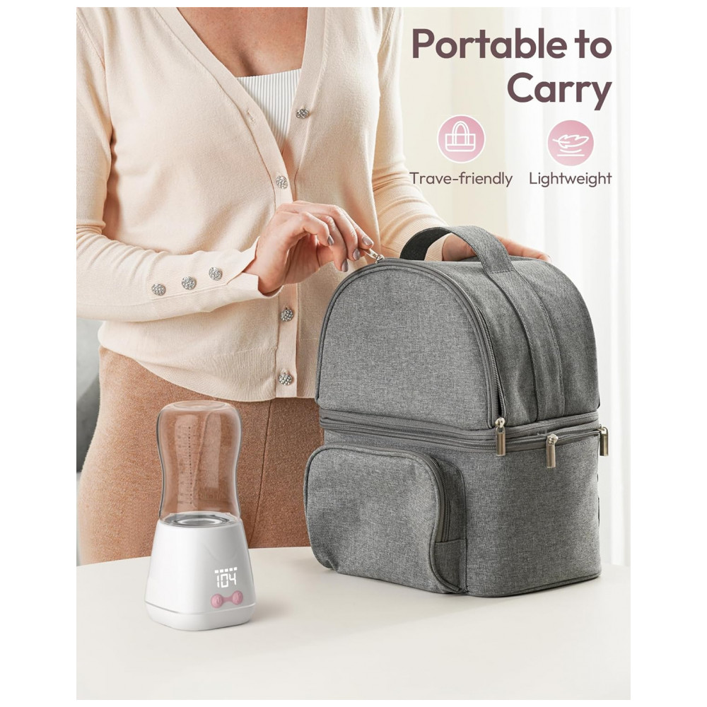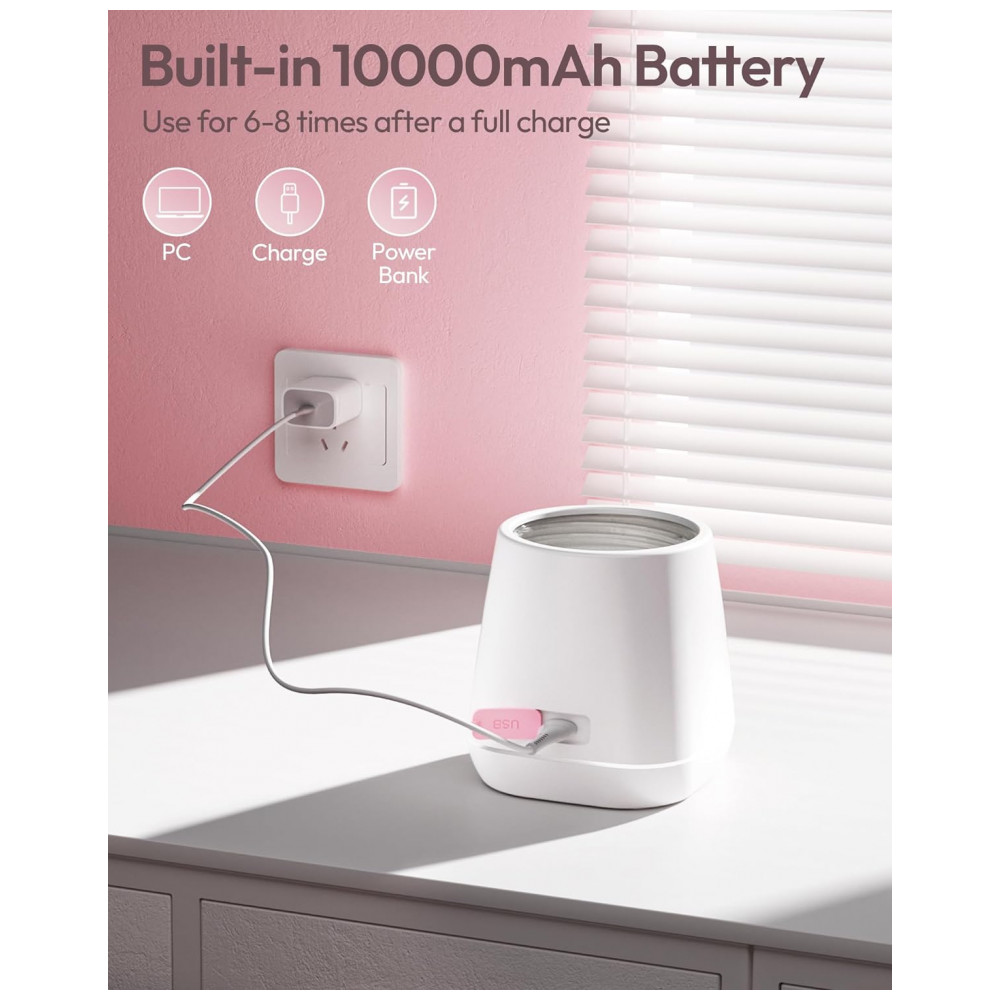 Design portátil e sem fio para viagens: O aquecedor de mamadeiras portátil possui um design sem fio, equipado com uma bateria substancial de 10.000 mAh e é incrivelmente compacto, tornando muito fácil guardá lo na bolsa ou no veículo do bebê. Permite aquecer o leite materno a qualquer hora e em qualquer lugar, permitindo que o seu bebé saboreie o leite materno ou a fórmula à temperatura ideal enquanto se desloca. É a escolha ideal para casa, escritório, viagens ou até mesmo piqueniques ao ar livre.