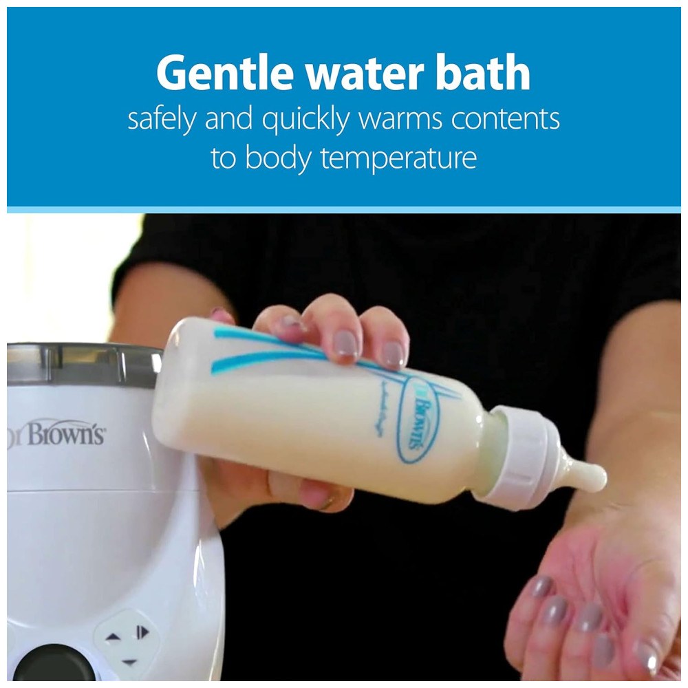 Aqueça o leite materno com segurança e rapidez até a temperatura corporal com o banho de água suave do aquecedor de leite materno e mamadeira Dr. Browns Natural Flow MilkSPA. Este aquecedor de leite materno fornece aquecimento uniforme e consistente que segue as diretrizes do CDC e USDA para melhor preservar os nutrientes do leite materno e da fórmula. As configurações pré programadas permitem personalizar o ciclo de aquecimento para começar em temperatura congelada, refrigerada ou ambiente, garantindo que a refeição do seu bebê esteja sempre perfeitamente preparada. O MilkSPA também possui desligamento automático conveniente e recursos de temporizador para ajudar a evitar o superaquecimento, proporcionando a você a tranquilidade de saber que o leite do seu bebê está sempre perfeitamente aquecido. O banho de água suave aquece com segurança e rapidez o leite materno até a temperatura corporal.