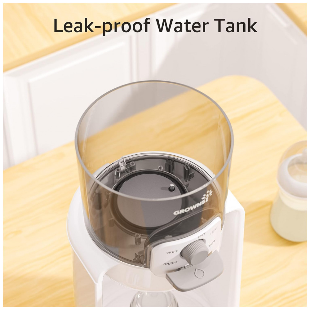Priorizando a saúde do bebê: A Grownsy se preocupa com a saúde do seu bebê e projetou o dispensador com um tanque hermético e livre de BPA. O design é , higiênico e à prova de vazamentos, garantindo que a água quente seja segura para uso e não contenha substâncias nocivas ou cheiro de plástico que possam prejudicar a saúde do bebê.