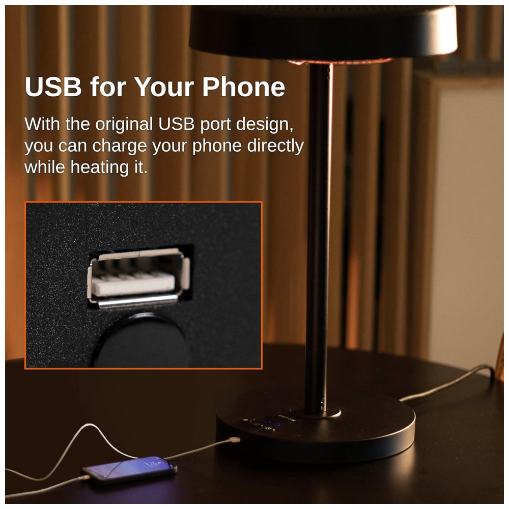 Aquecedor de Mesa Elétrico Externo com Controle Remoto Porta USB 3 Configurações de Aquecimento e IP65 à Prova D’água 110V 1500W EAST OAK Preto