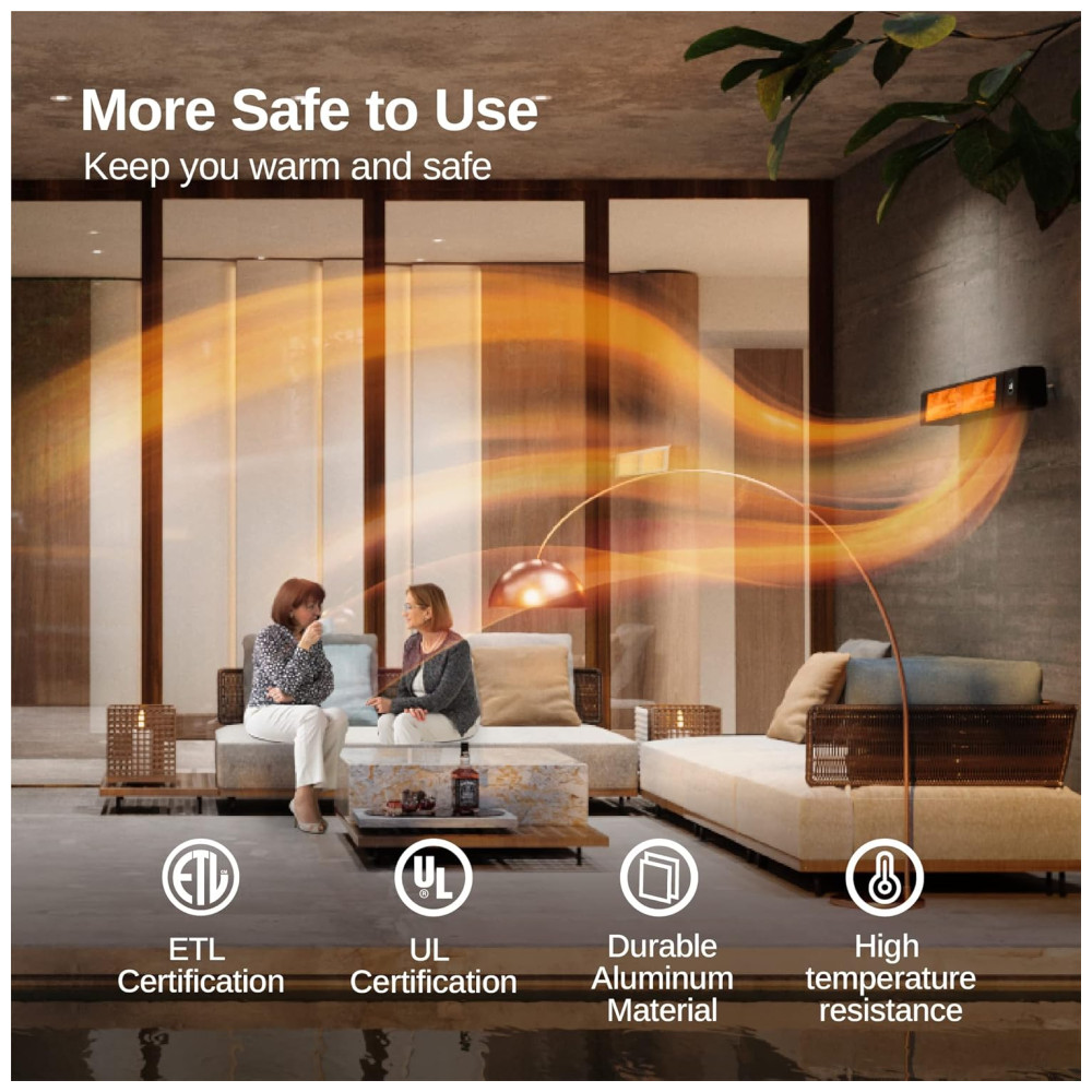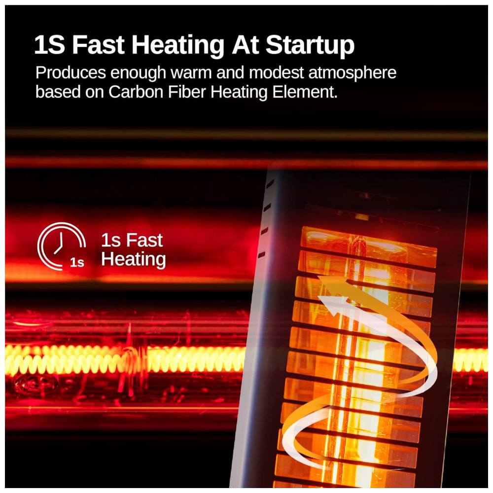 Este aquecedor possui uma tecnologia elétrica infravermelha patenteada ULG, que fornece calor instantâneo em apenas 1 segundo e transfere diretamente o calor para pessoas e superfícies próximas sem perda de calor. Ele é feito de material de alumínio extra grosso de alta qualidade e possui uma certificação ETL e UL, tornando o resistente a altas temperaturas, ferrugem, corrosão e arranhões.