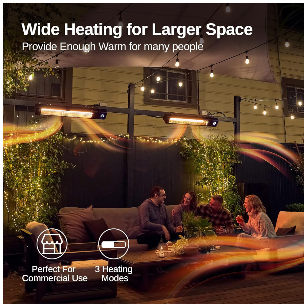 Além disso, este aquecedor possui uma classificação de proteção IP65 à prova d água e à prova de poeira, tornando o perfeito para uso em residências, quintais, garagens e pátios externos. Por fim, é importante destacar que este aquecedor é incompatível com tensão doméstica de 120V e deve ser instalado por um eletricista certificado.