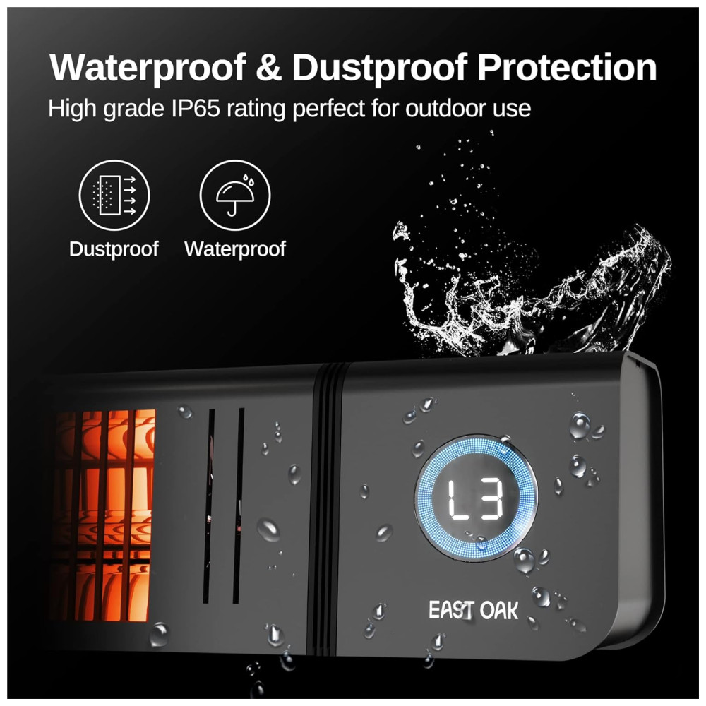 Aquecedor de Parede Elétrico Interno e Externo com Controle Remoto Display Digital Controle Remoto e à Prova D’água IP65 220V 3000W EAST OAK Preto