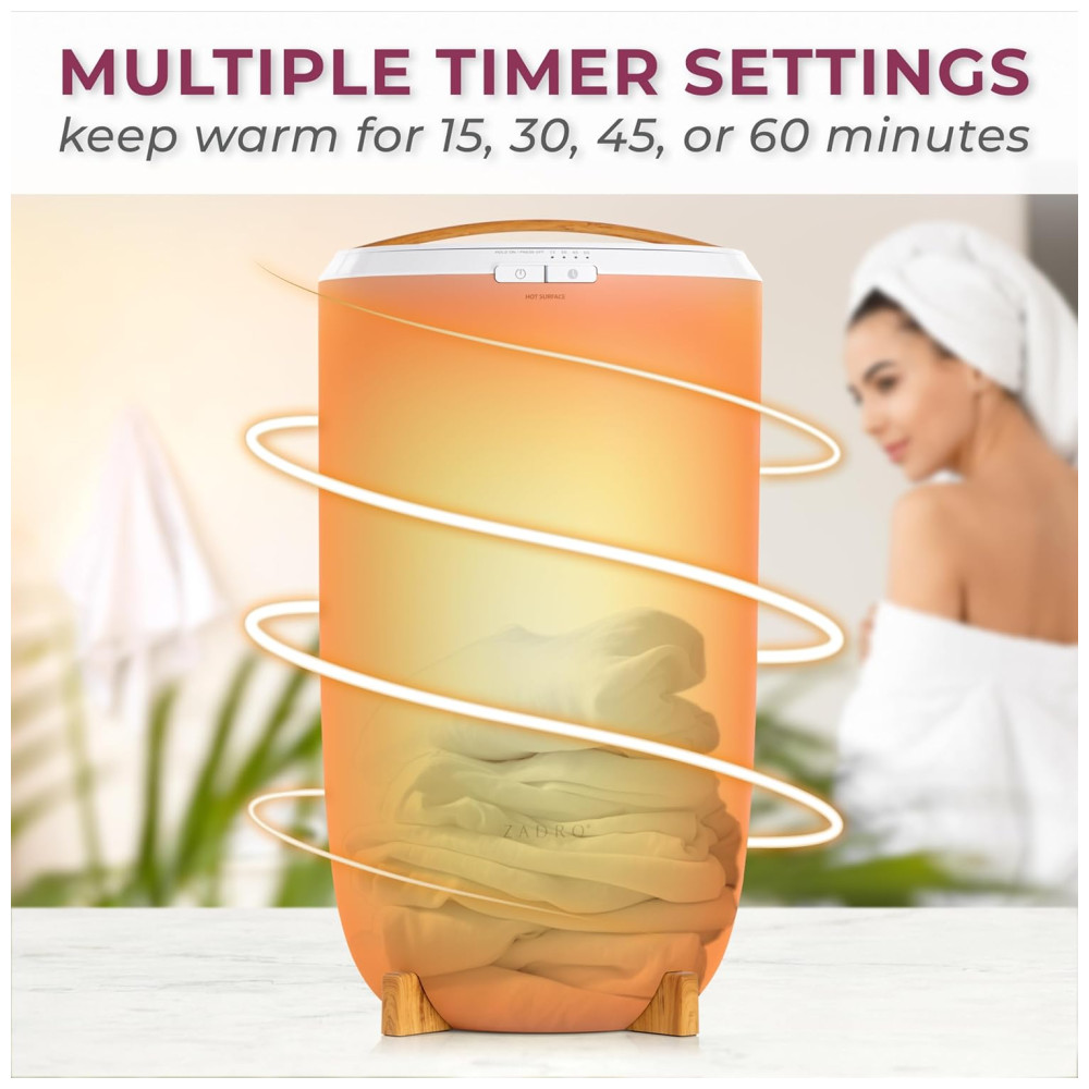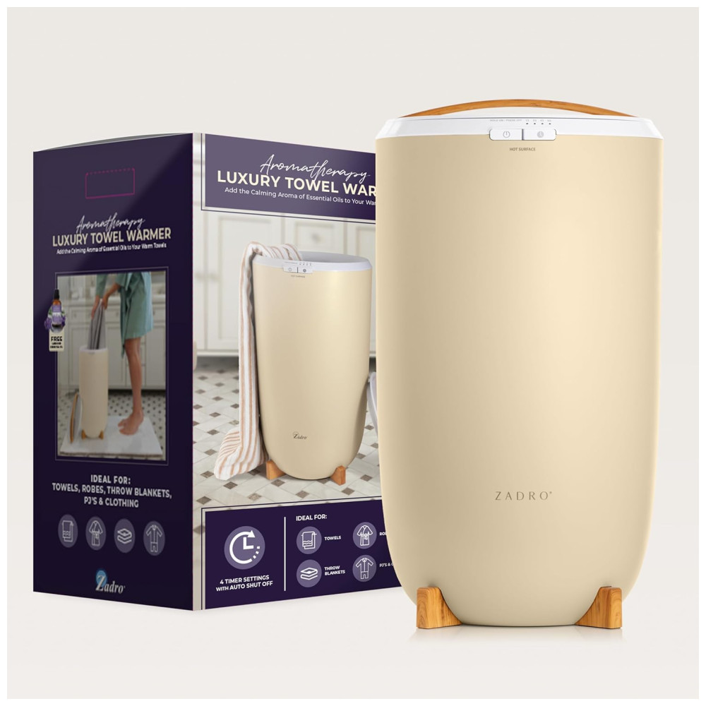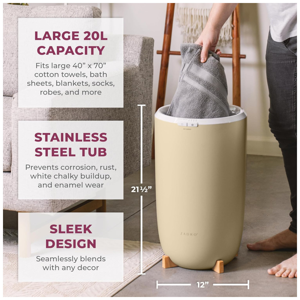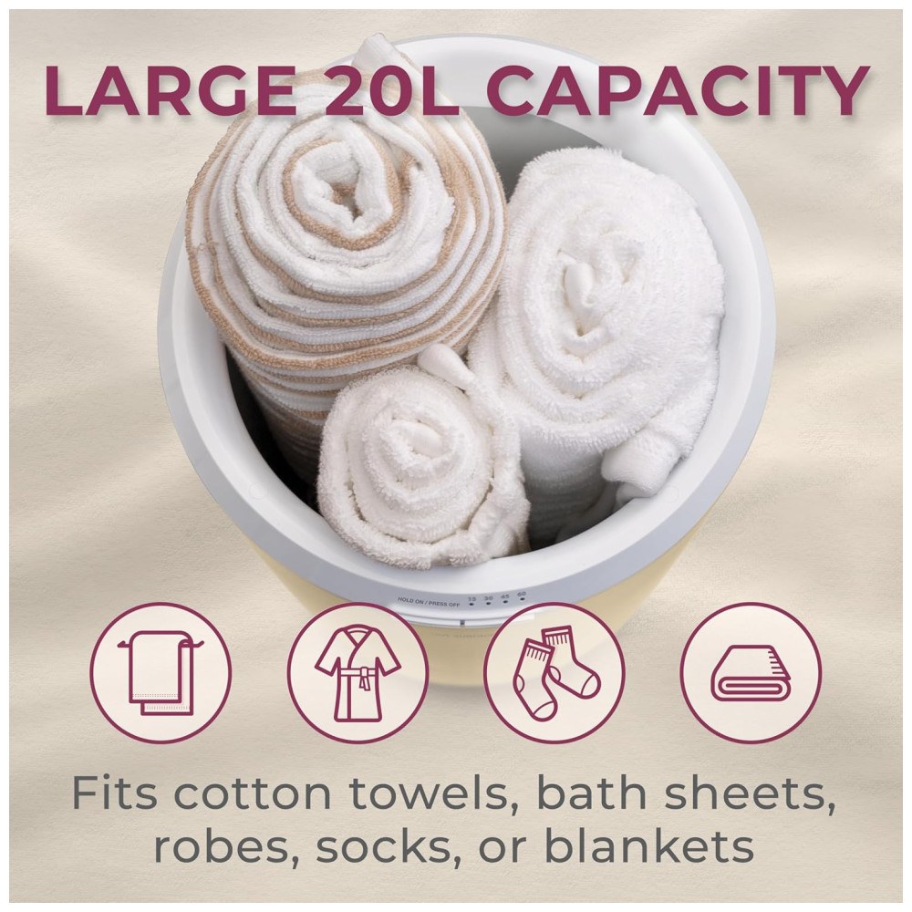 Aquecedor de Toalha Elétrico 20L com Aromaterapia e Óleo Essencial de Lavanda Temporizador e Desligamento Automático 110V Zadro Marfim Bambu