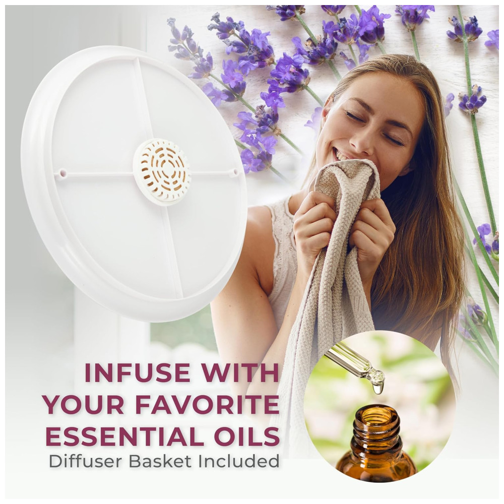 Adicione um aroma calmante de lavanda ao seu banho ou tratamento facial com o nosso aquecedor de toalhas de aromaterapia. Este elegante balde de plástico isolado, com capacidade ultragrande, pode acomodar até duas toalhas de banho grandes de 101 x 177 cm, além de roupões, mantas e pijamas.