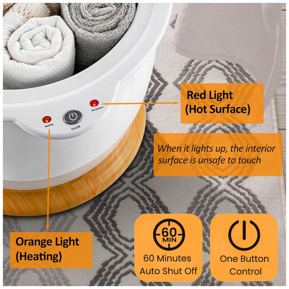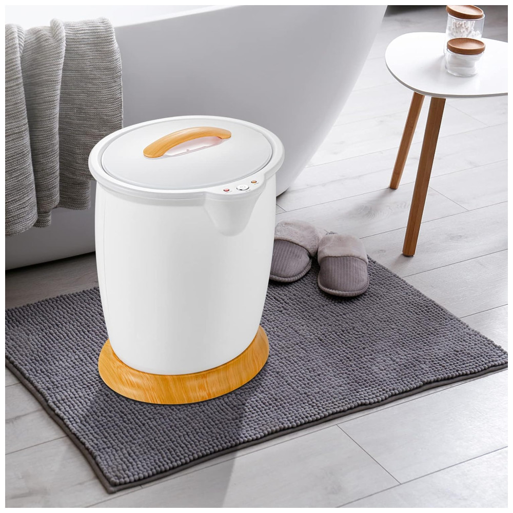 GRANDE CAPACIDADE DE 20L O aquecedor de toalhas estilo balde pode aquecer até duas toalhas de banho de algodão grandes de x 178 centimetros. Também pode ser para aquecer cobertores, meias, roupões de banho, roupas íntimas, pijamas e muito mais.