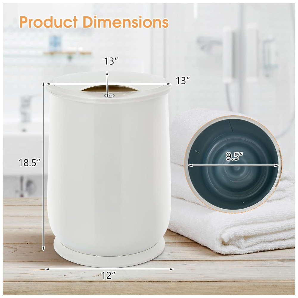 Aquecedor de toalhas compacto e elegante Pesando 3 kg, este aquecedor de toalhas é portátil e fácil de guardar. O elegante aquecedor de toalhas estilo balde adiciona luxo ao seu banho e é perfeito para qualquer estilo de banheiro. É um ótimo presente de Natal, presente de aniversário, presente de Dia dos Namorados, presente de Dia dos Pais para sua família e amigos