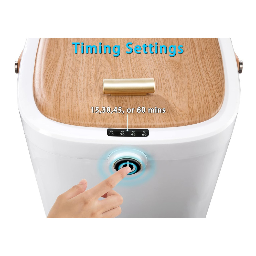 GRANDE CAPACIDADE O balde aquecedor de toalhas possui uma cavidade generosa com capacidade para 20L, permitindo que acomode duas toalhas de banho grandes de 40×70 x 178 centimetros ou um cobertor pessoal, roupão ou pijama. Perfeito para uso familiar ou para um dia de spa com os amigos.