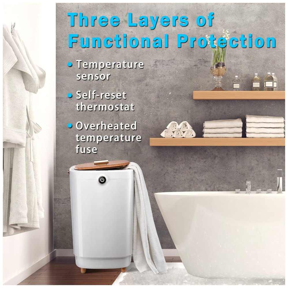 PORTÁTIL E VERSÁTIL Nosso aquecedor de toalhas é leve e fácil de transportar pela casa. A tampa pode ser removida para facilitar a limpeza e a luz indicadora simples e clara torna o uso mais fácil. Além disso, é perfeito para uso em casa, spa, hotel e muito mais.