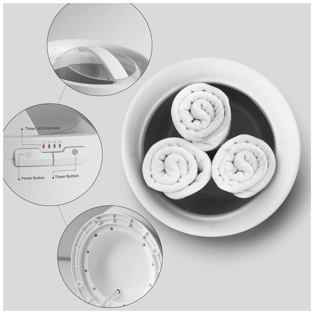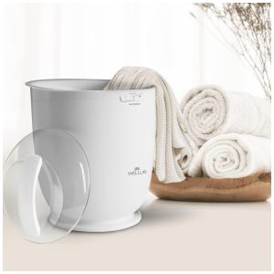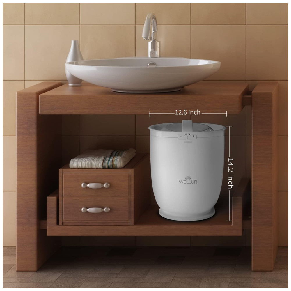 WELLUR Balde Aquecedor de Toalhas. Saia do chuveiro e envolva se no conforto aconchegante de uma toalha quente ou quente. O balde de aquecedor de toalhas aquece qualquer toalha em apenas alguns minutos. Basta colocar a toalha no balde aquecedor de toalhas, pressionar o temporizador embutido que permite aquecer as toalhas por 15, 30, 45 ou 60 minutos antes de desligar automaticamente