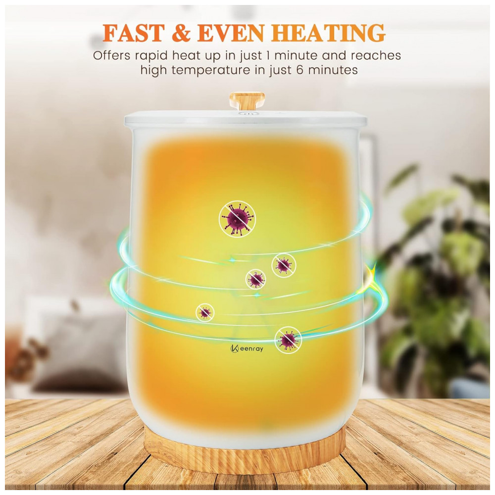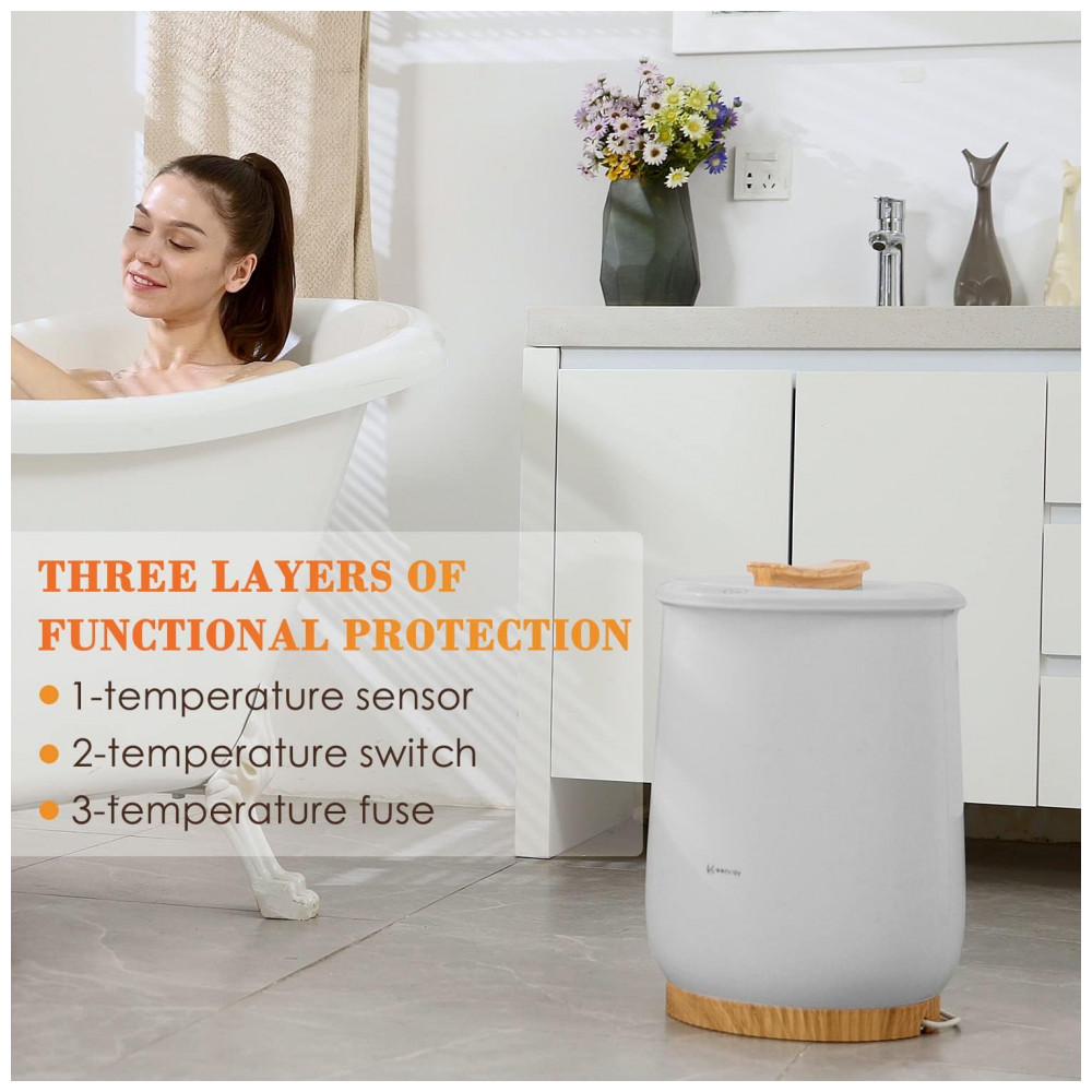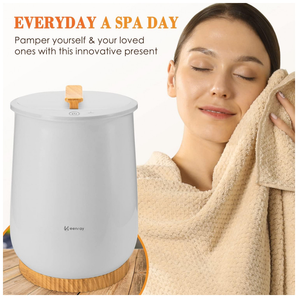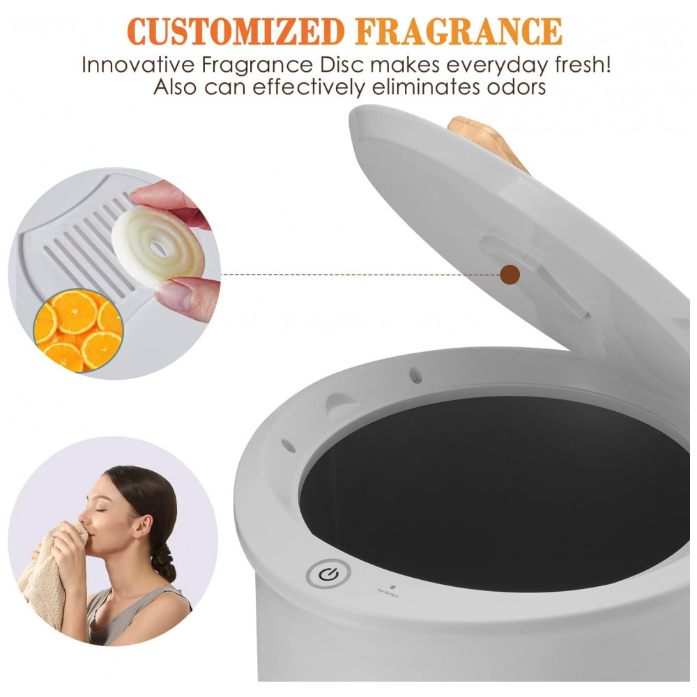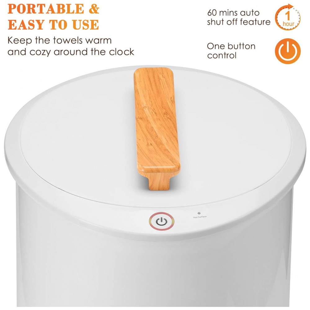 Aquecimento rápido Oferece aquecimento rápido em apenas 1 minuto e atinge alta temperatura em apenas 6 minutos. Este aquecedor de toalha de balde de luxo é controle de botão único, até 60 minutos de tempo de aquecimento. Design decente, operação fácil como uma brisa. Mantenha as toalhas quentes e aconchegantes o tempo todo. Esteja você tomando um banho rápido ou um banho longo e relaxante, o aquecedor atende a todas as suas necessidades, use o com mais confiança.