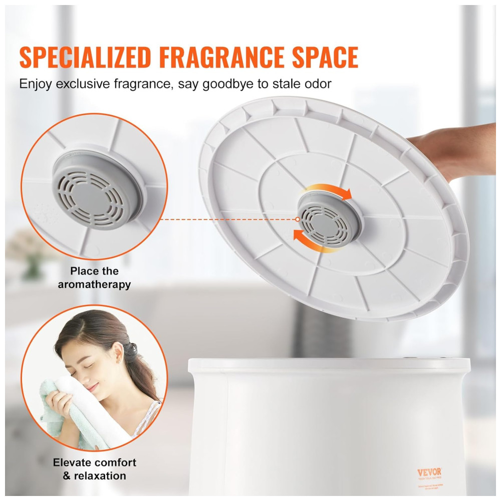 Adicionalmente, o aquecedor VEVOR inclui uma seção de aromaterapia, permitindo que você adicione suas próprias partículas de aromaterapia ou almofadas embebidas em óleos essenciais, para um toque personalizado de relaxamento e conforto.