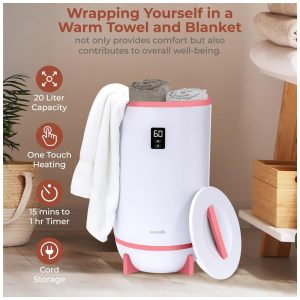 Desfrute do luxo de toalhas e cobertores quentes após um banho relaxante. Este aquecedor possui um temporizador integrado com opções de 15, 30, 45 ou 60 minutos, permitindo ajustar o tempo de aquecimento conforme sua preferência. Ele acomoda confortavelmente duas toalhas de banho grandes e conta com um desligamento automático para maior segurança.