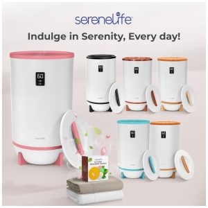 Aquecedor de Toalha Elétrico com Desligamento Automático Temporizador Integrado até 60 Min e Suporte para Disco Perfumado 110V 500W SereneLife Branco e Rosa