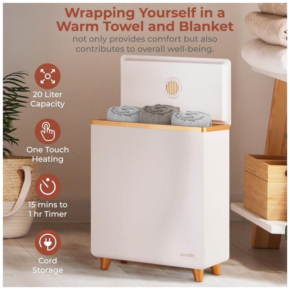Aquecedor de Toalha Elétrico Para 2 Toalhas Grandes com Fragrância Personalizada e Desligamento Automático 110V SereneLife SLTLR150 Branco