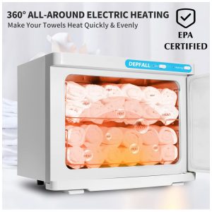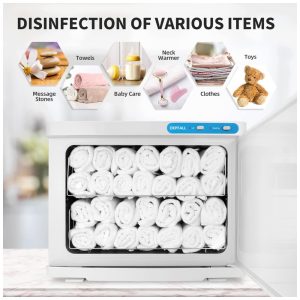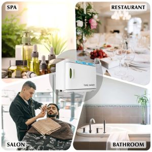 Poderoso sistema de aquecimentoVocê só precisa conectá lo à energia de 110V, colocar as toalhas molhadas e fechar a porta ligeiramente e pressionar o botão LIGAR, DESLIGAR e UV, a máquina de toalhas quentes pode ser aquecida rapidamente e uniformemente para aumentar média de 65 a 70 C. Em geral, aqueça por mais de meia hora. Se colocar muitas toalhas, aqueça por mais de 1 hora.