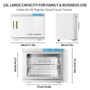 Gabinete grande para aquecedor de toalhasEste aquecedor de toalhas de spa tem uma grande capacidade de 23 litros com rack de 2 camadas que pode zenar cerca de 50 60 peças de toalhas de tamanho normal. Com tamanho de 45 centímetros x 29 centímetros x 35 centímetros comprimento x largura x altura, é mais prático e eficiente e vai economizar mais tempo