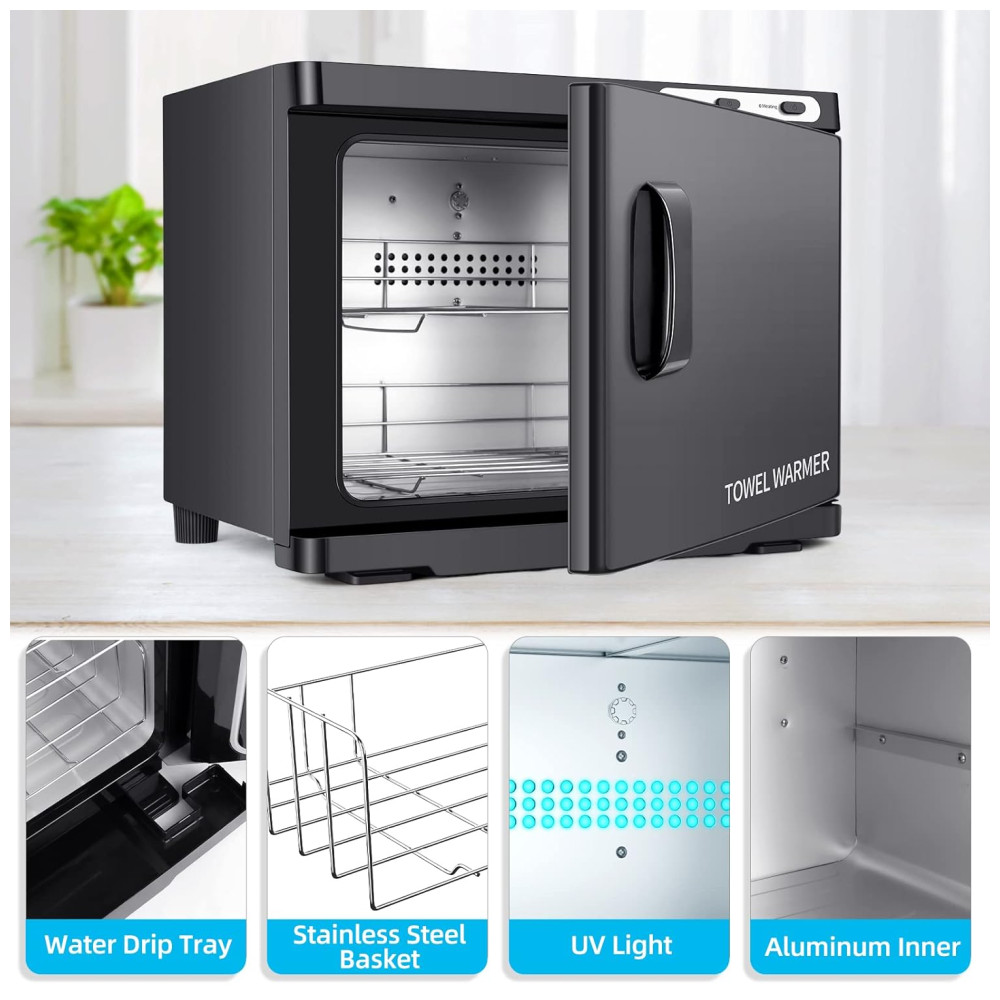 Aquecedor de toalhas quentes 2 em 1SOMENTE TOALHAS MOLHADAS A luz dentro do tanque para aquecimento e limpeza de toalhas faciais também pode ser usada para toalhas de banho, roupas íntimas, ferramentas para unhas, pedras de massagem e outras ferramentas de beleza, ideais para casa, spa, banheiro, salões de beleza, hotel, restaurante e cozinha.