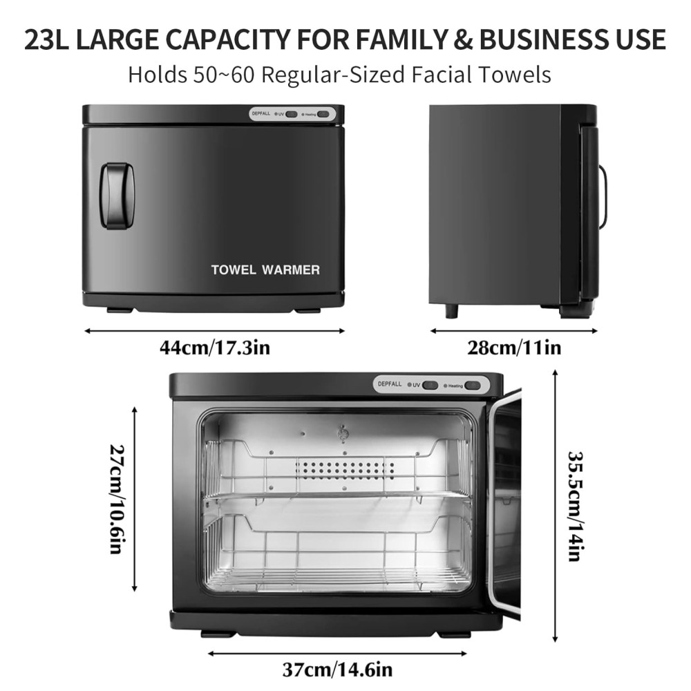 Gabinete grande para aquecedor de toalhasEste aquecedor de toalhas de spa tem uma grande capacidade de 23 litros com rack de 2 camadas que pode zenar cerca de 50 60 peças de toalhas de tamanho normal. Com tamanho de 45 centímetros x 29 centímetros x 35 centímetros comprimento x largura x altura, é mais prático e eficiente e vai economizar mais tempo