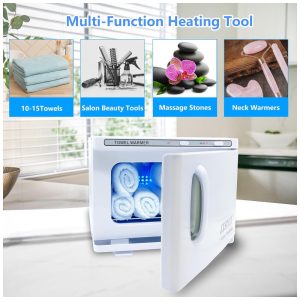 Aquecedor de Toalhas 2 em 1: Possui 2 modos: aquecimento e luz UV. Além de aquecer toalhas, também pode ser usado para aquecer toalhas de banho, compressas quentes, aquecedores de pescoço, tratamentos faciais, pedras de massagem e outras ferramentas de higiene. Também serve para esterilizar ferramentas de beleza e unhas. Ideal para uso em banheiros, cozinhas, spas, salões de beleza, academias, hotéis e para uso doméstico.