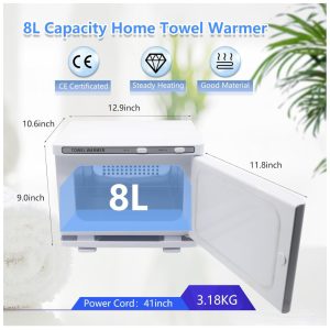 Capacidade Média: Com capacidade de 8L, este aquecedor comporta de 6 a 8 toalhas de banho comuns (28 x 15 polegadas) ou de 12 a 14 toalhas faciais (30 x 30 cm). Se precisar de mais espaço para toalhas de banho, recomendamos nosso modelo de 23L. Compacto e ideal para uso doméstico ou pequenos negócios, não ocupa muito espaço.