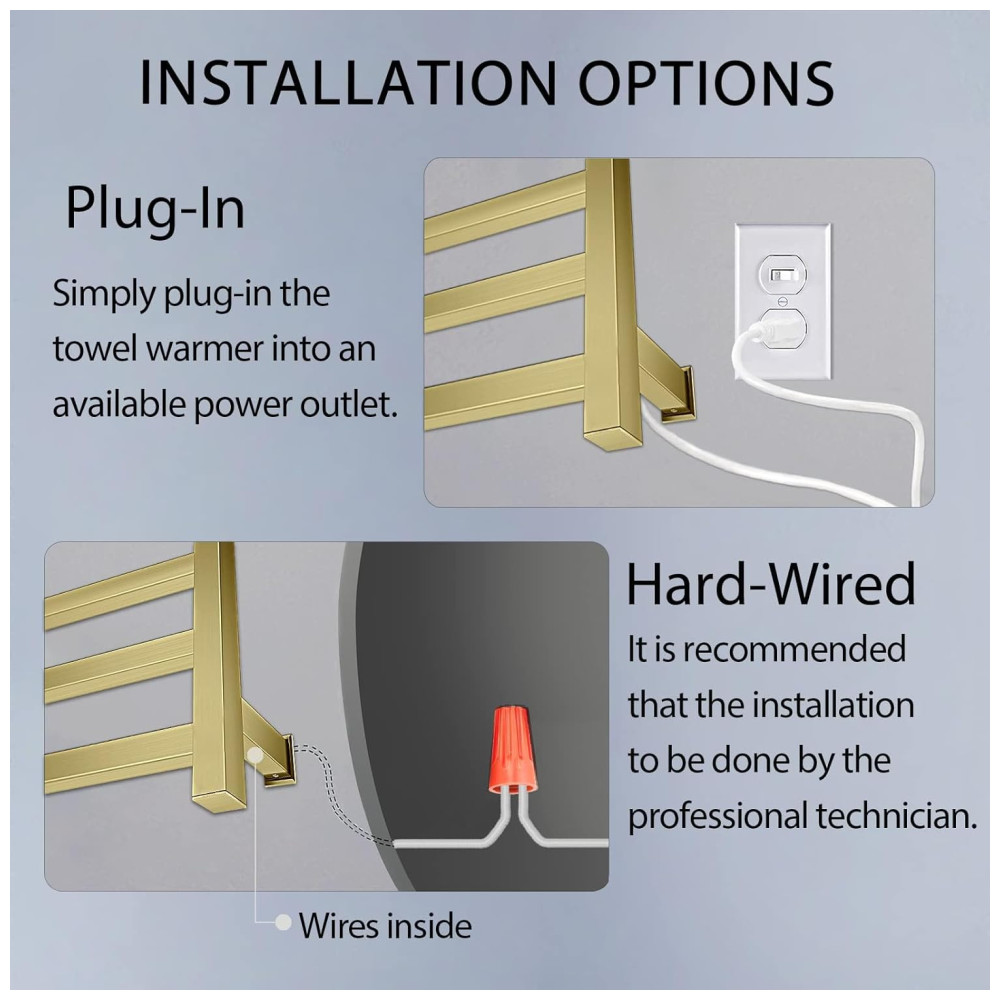 Ideal para secagem rápida e fácil, quer você tenha um banheiro novo ou esteja reformando um para atender às necessidades de manter suas toalhas e roupões secos, aquecidos e confortáveis depois de sair do banho ou do chuveiro INSTALAÇÃO MONTADA NA PAREDE Oferece duas maneiras de fiação ao mesmo tempo com plugue com fio