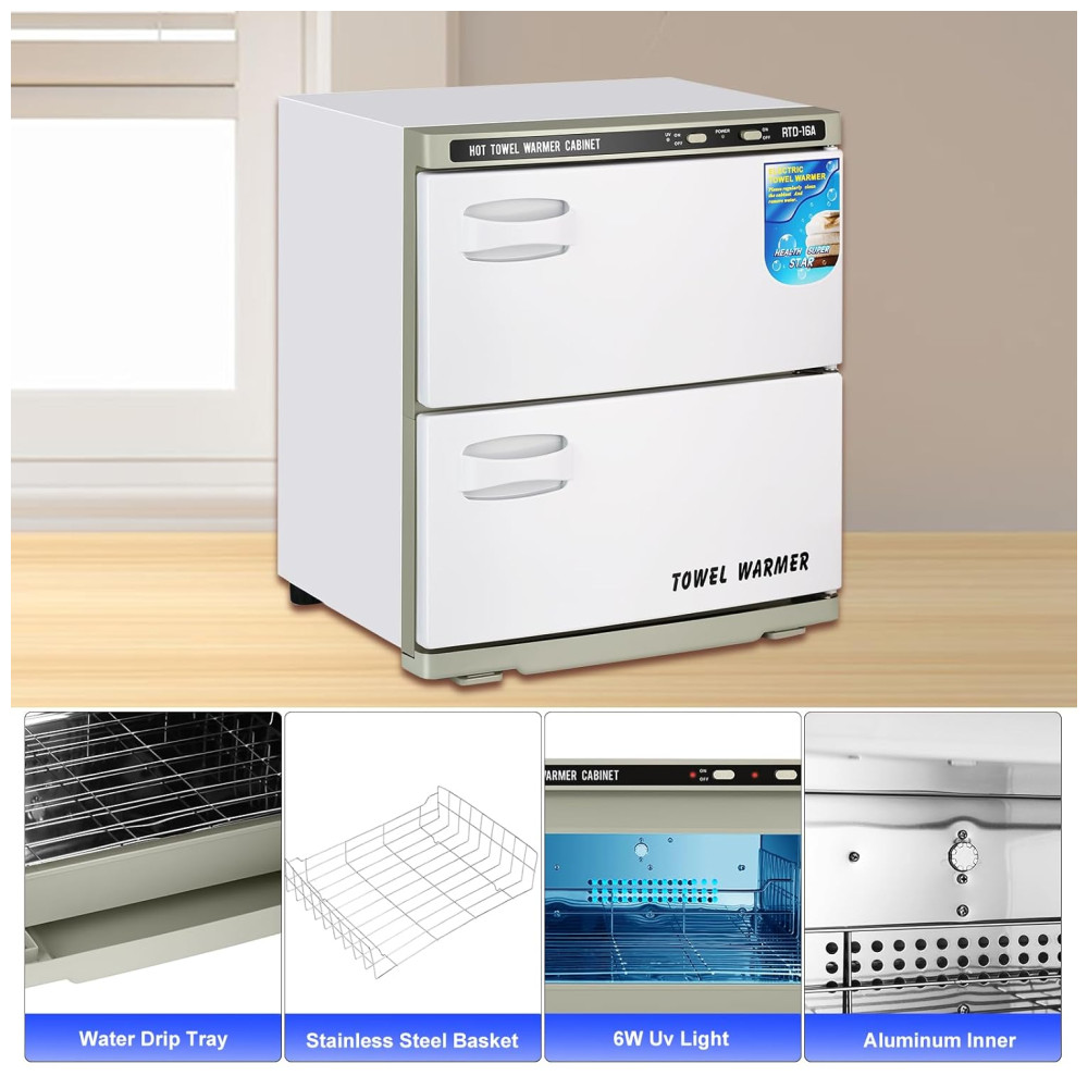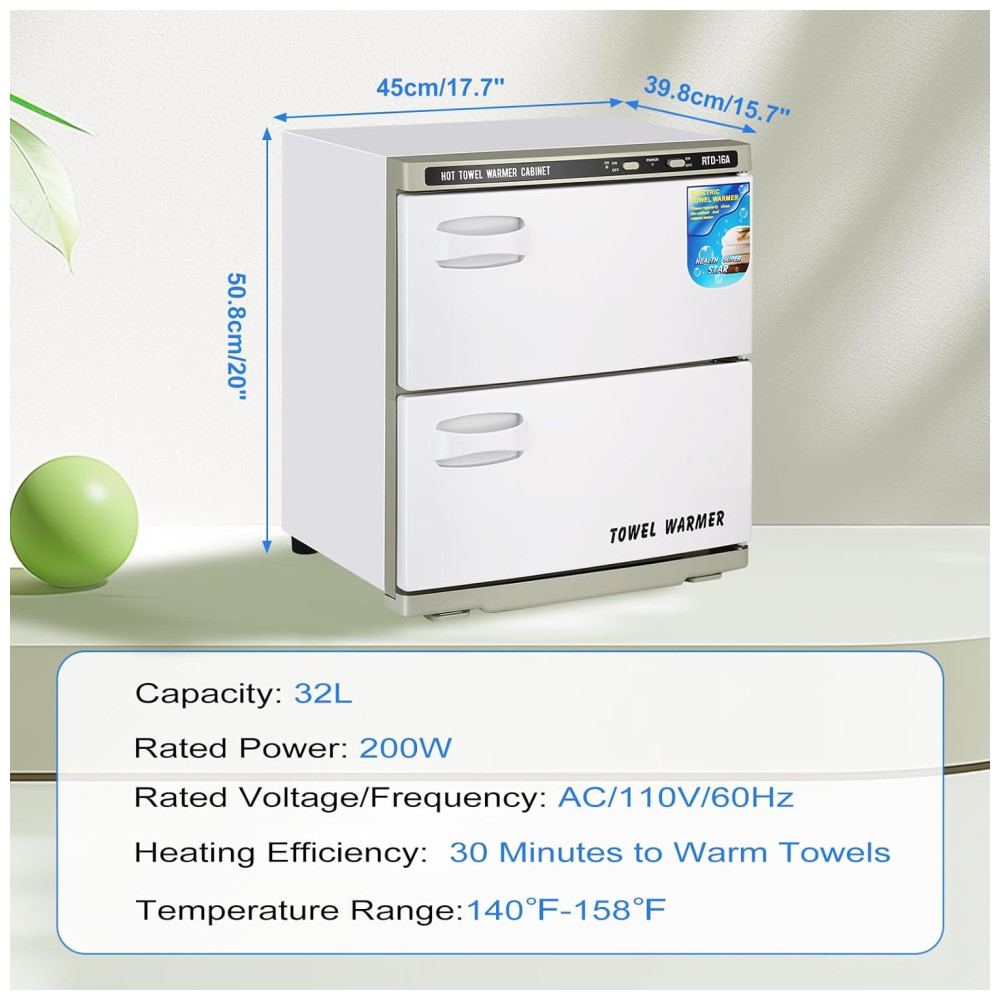Aquecedor de Toalhas Profissional 2 em 1 com 32L de Capacidade para Barbearia Salões e Spas 110V 200W Sannewstartu Branco