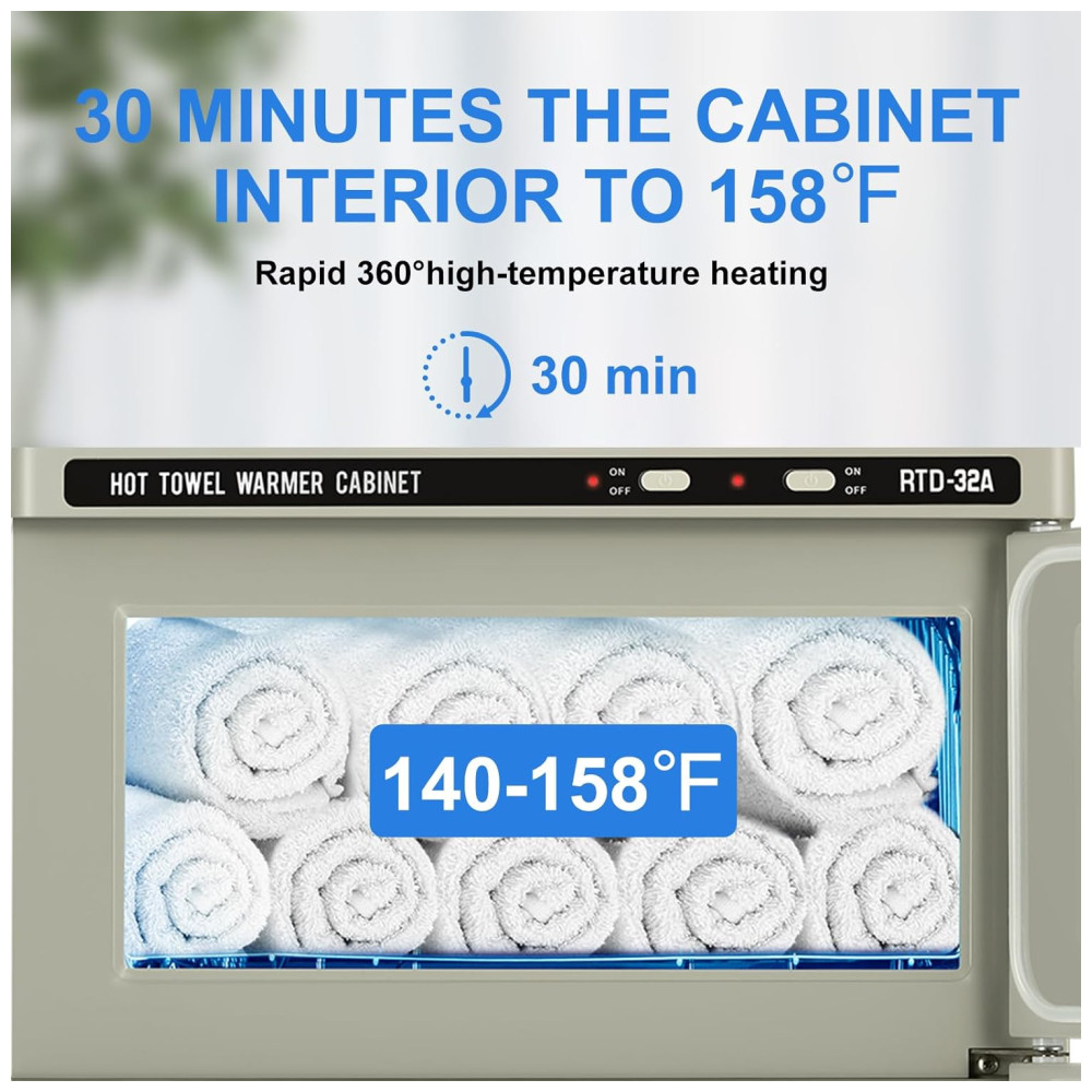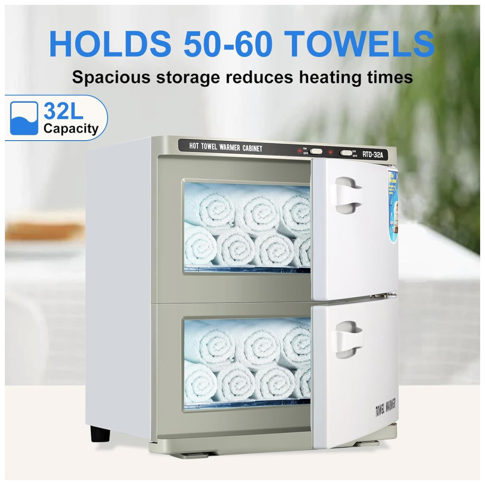 Capacidade de 32L: Com uma impressionante capacidade de 32L, este aquecedor pode acomodar de 50 a 60 toalhas de tamanho padrão (dependendo do tamanho das toalhas), permitindo economizar tempo, evitando aquecimentos múltiplos. Eficiência e praticidade são o foco deste modelo.
