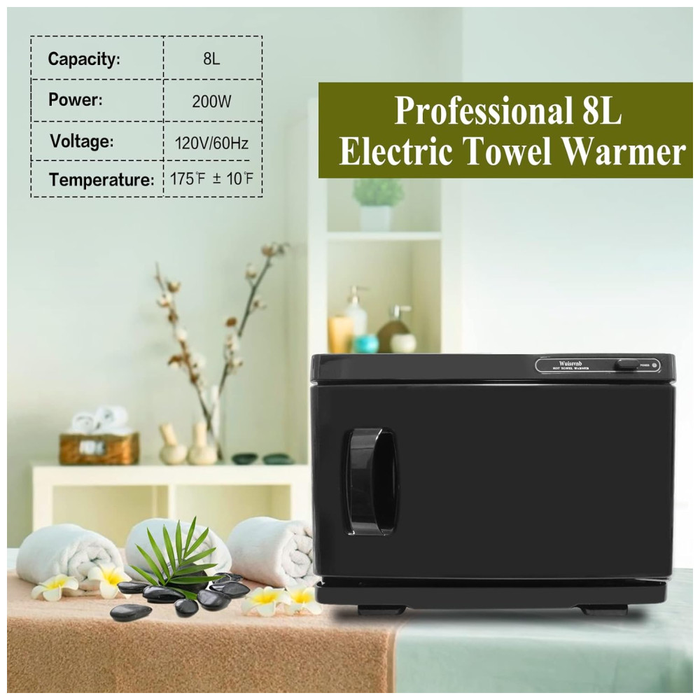 Aquecedor de Toalhas Profissional 8L para Tratamentos Faciais e Spa 110V 200W Wuissvnb Preto