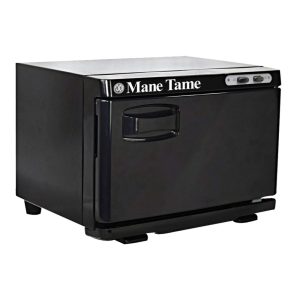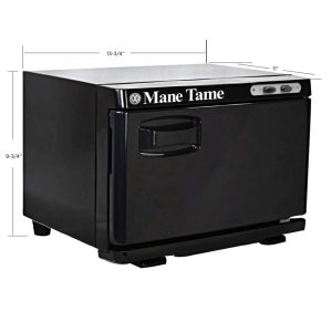 O aquecedor de toalhas profissional Mane Tame é ideal para barbearias e salões, oferecendo capacidade para aquecer confortavelmente até 11 toalhas no tamanho de 15 x 28 polegadas. Possui design compacto que se adapta à maioria das bancadas e estações de trabalho. Equipado com lâmpada UV para esterilização, garante higiene e segurança no armazenamento das toalhas.