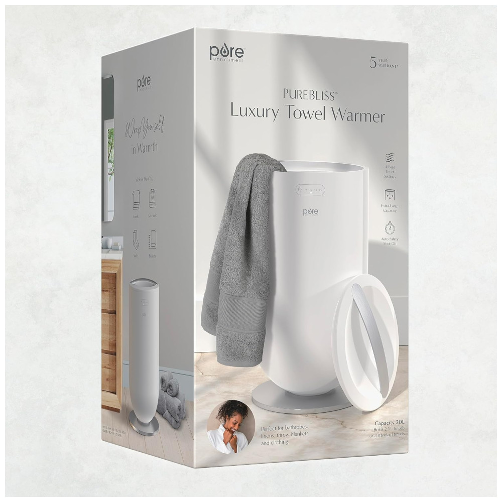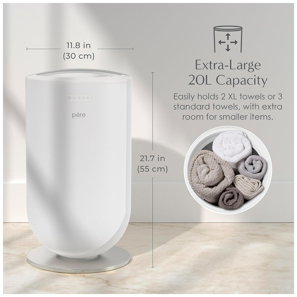 Aquecedor de Toalhas PureBliss Pure Enrichment Capacidade de 20L Aquece Toalhas Roupões Cobertores e Roupas. Design moderno 4 Configurações.