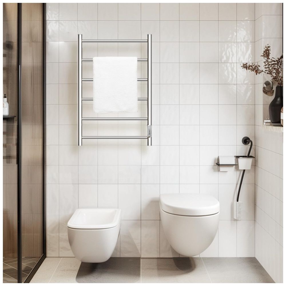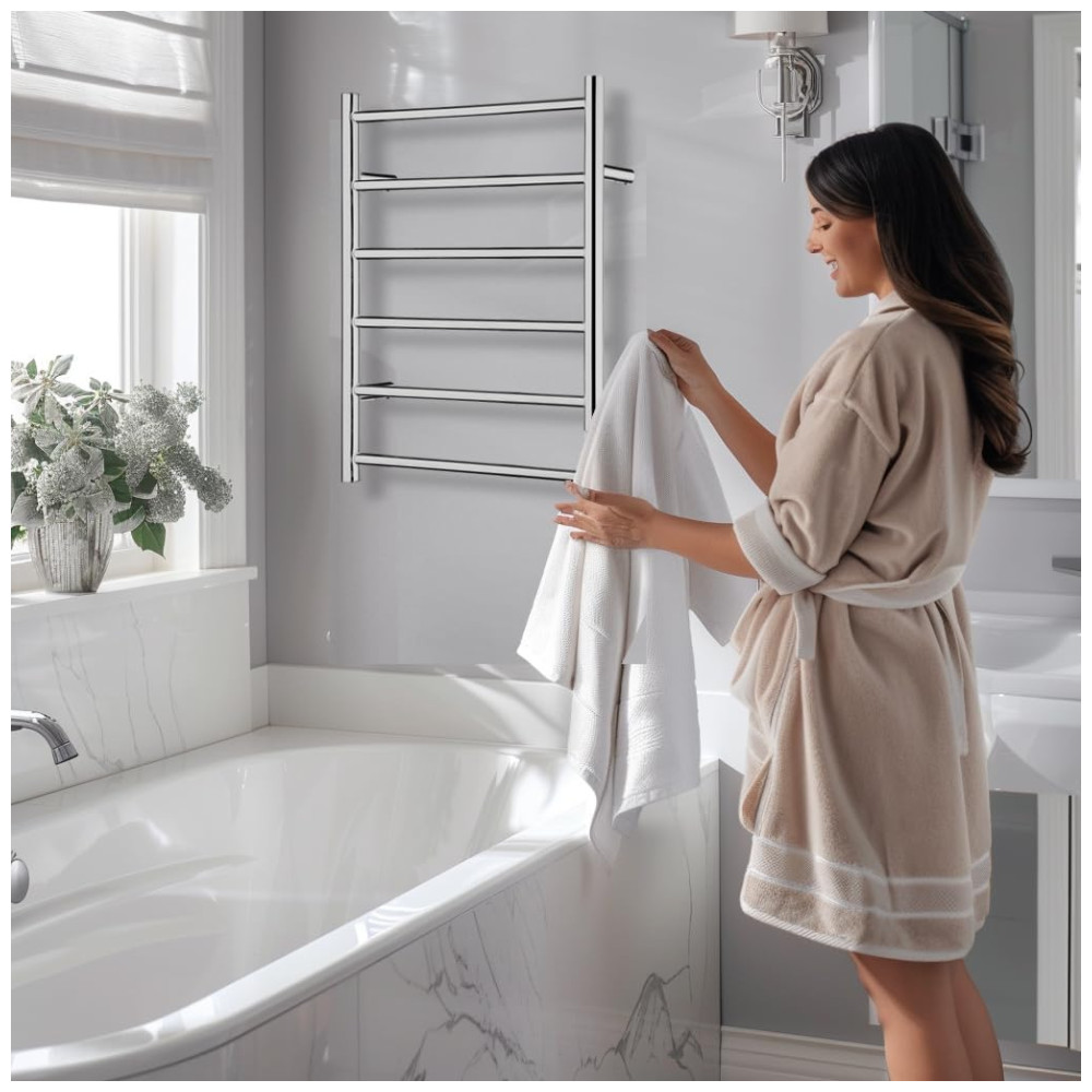 Aquecedor de Toalhas R FLORY, Estrutura de Aço Inoxidável, Design Compacto e Montagem na Parede. Aquecimento Rápido em 10 Minutos, Ideal para 3 Toalhas Grandes ou Roupões. Economia de Energia, Silencioso e Eficiente, Temperatura Máxima de 55°C (130°F). Design Moderno, Ideal para Banheiros, Hotéis, Spas e Áreas Externas. Prático e de Fácil Instalação, Economiza Espaço.