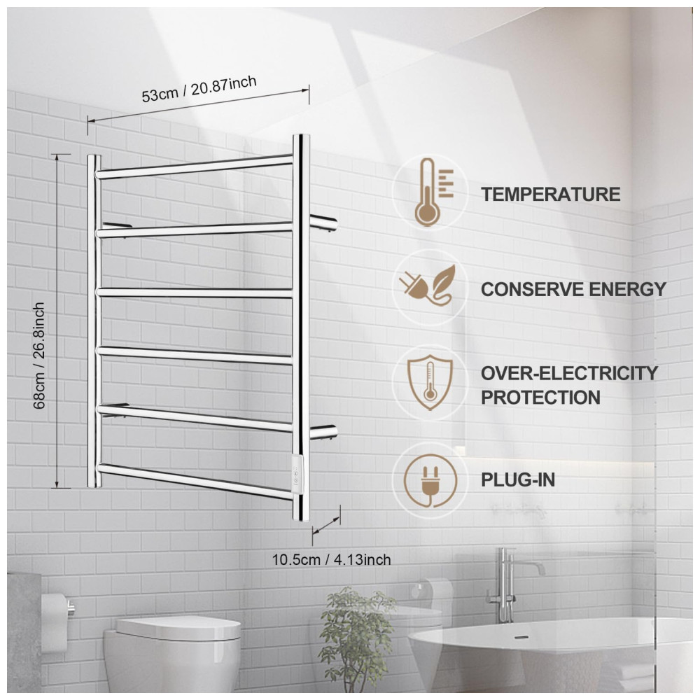 Aquecedor de Toalhas R FLORY Secador de Toalhas com 6 Barras Aquecimento Rápido Timer e Funciona a Tomada Mantém o Banheiro Aquecido à Noite.