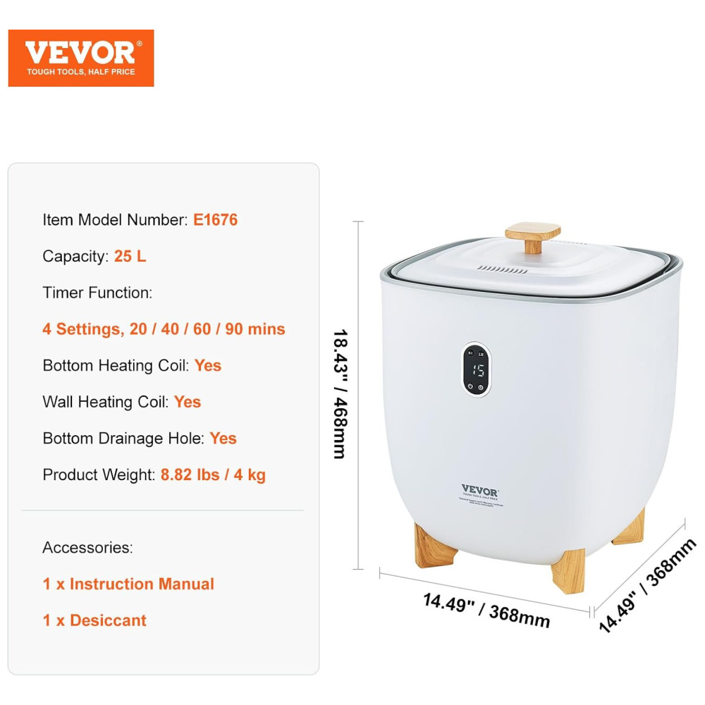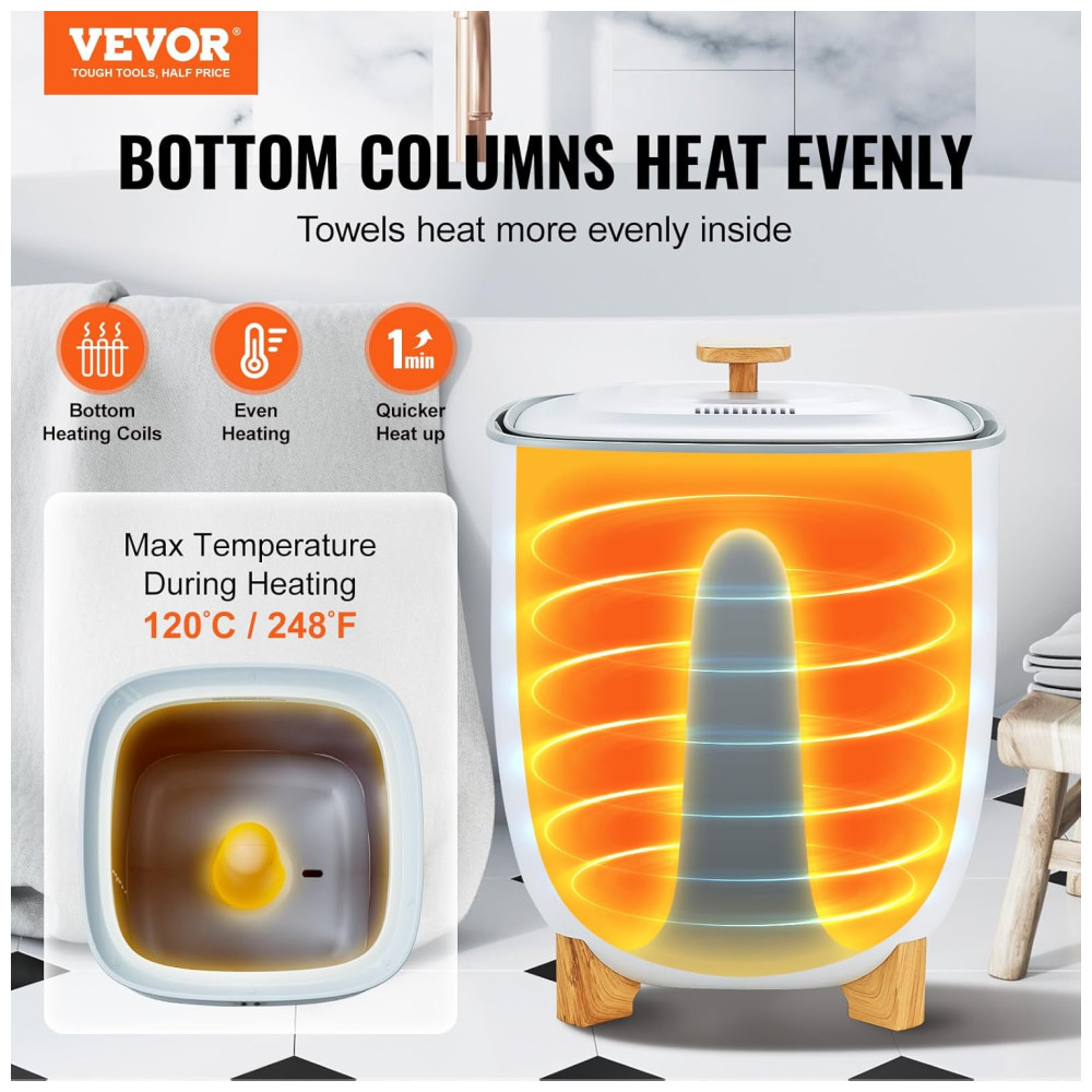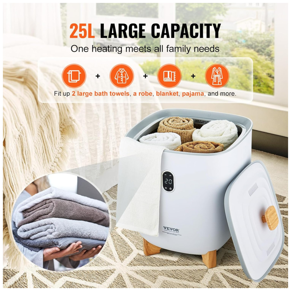 Aquecedor de Toalhas VEVOR 25L Balde com 2 Modos de Aquecimento Desligamento Automático em 20/40/60/90 Min Colunas de Aquecimento Inferiores.
