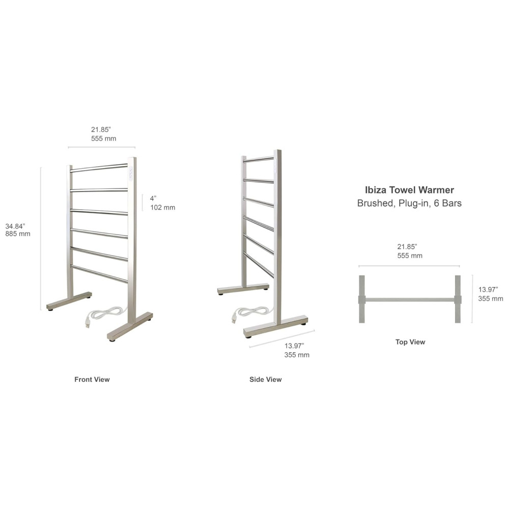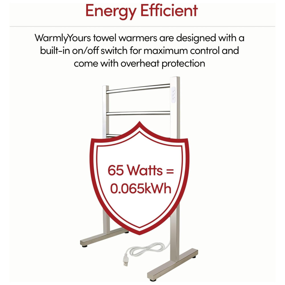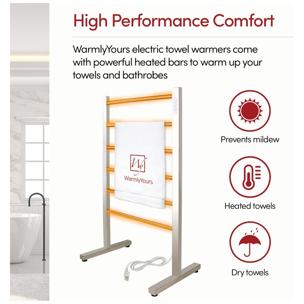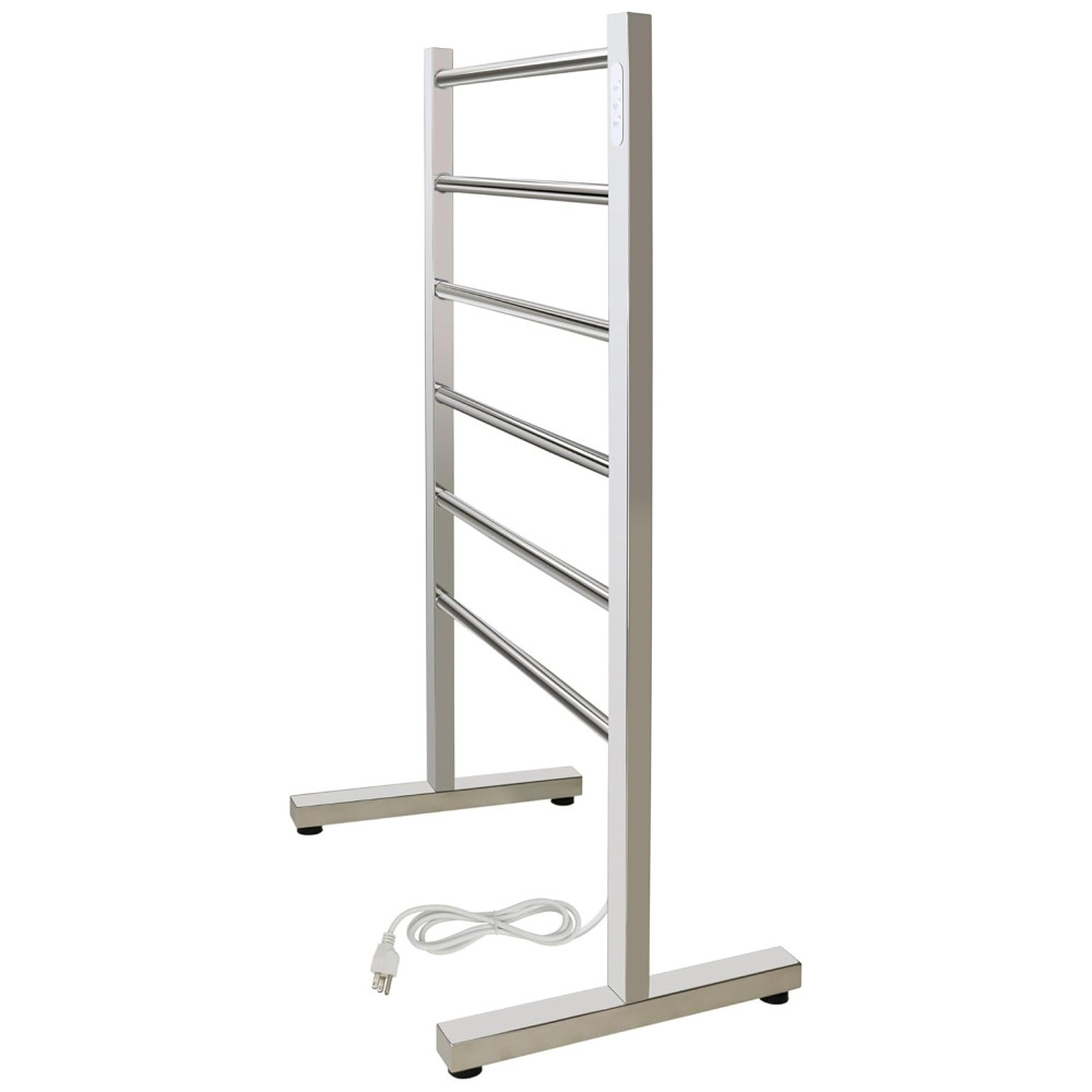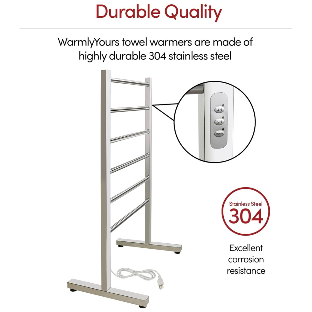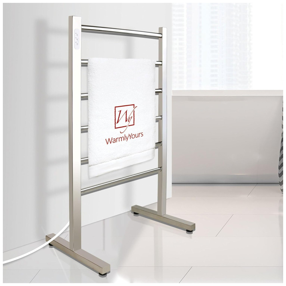 Aquecedor de toalhas WarmlyYours modelo freestanding com 6 barras aço inox polido plug-in com timer embutido.