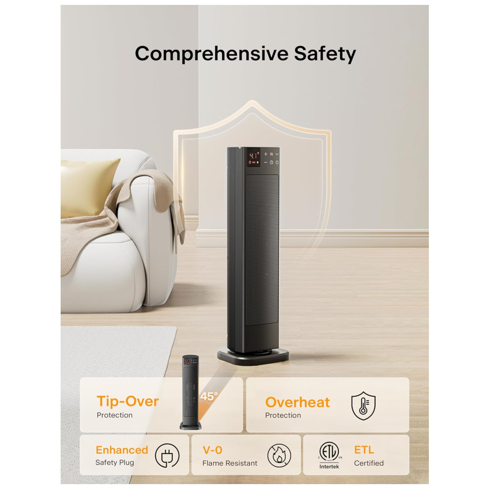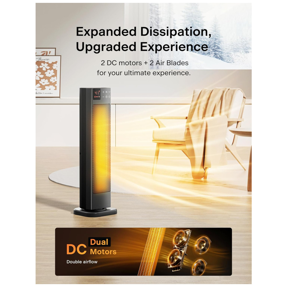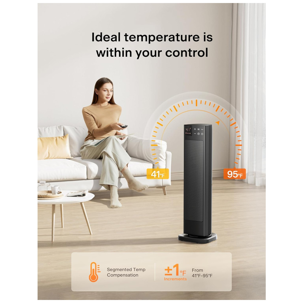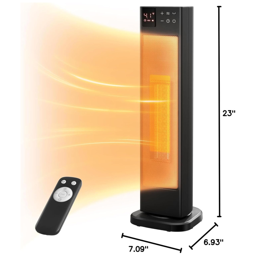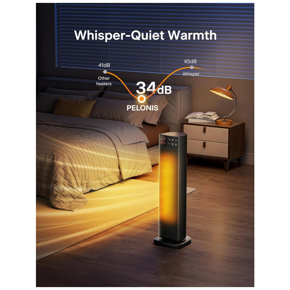 Aquecedor de Torre Cerâmica com Modo ECO Temporizador 12H Controle Remoto e Proteção de Segurança 110V 1500W PELONIS Preto