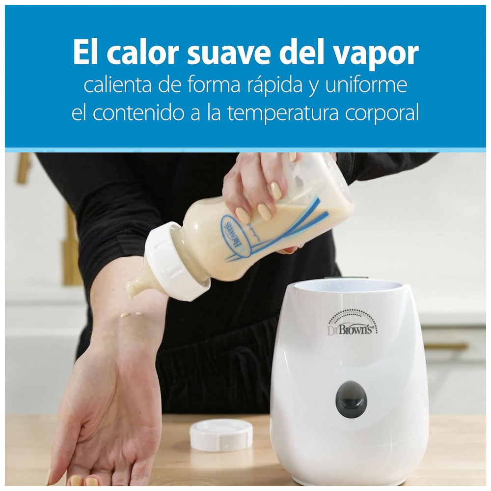 CRESCE COM O BEBÊ. O aquecedor de mamadeiras usa vapor suave para aquecer o conteúdo de maneira rápida e uniforme com o pressionar de um botão. Cabe em todas as mamadeiras do Dr. Brown, na maioria das outras marcas de mamadeiras e potes de comida para bebê.